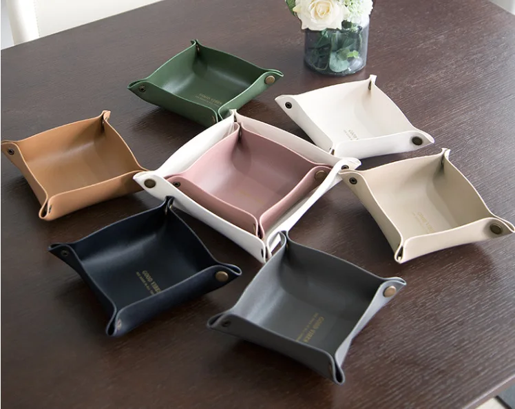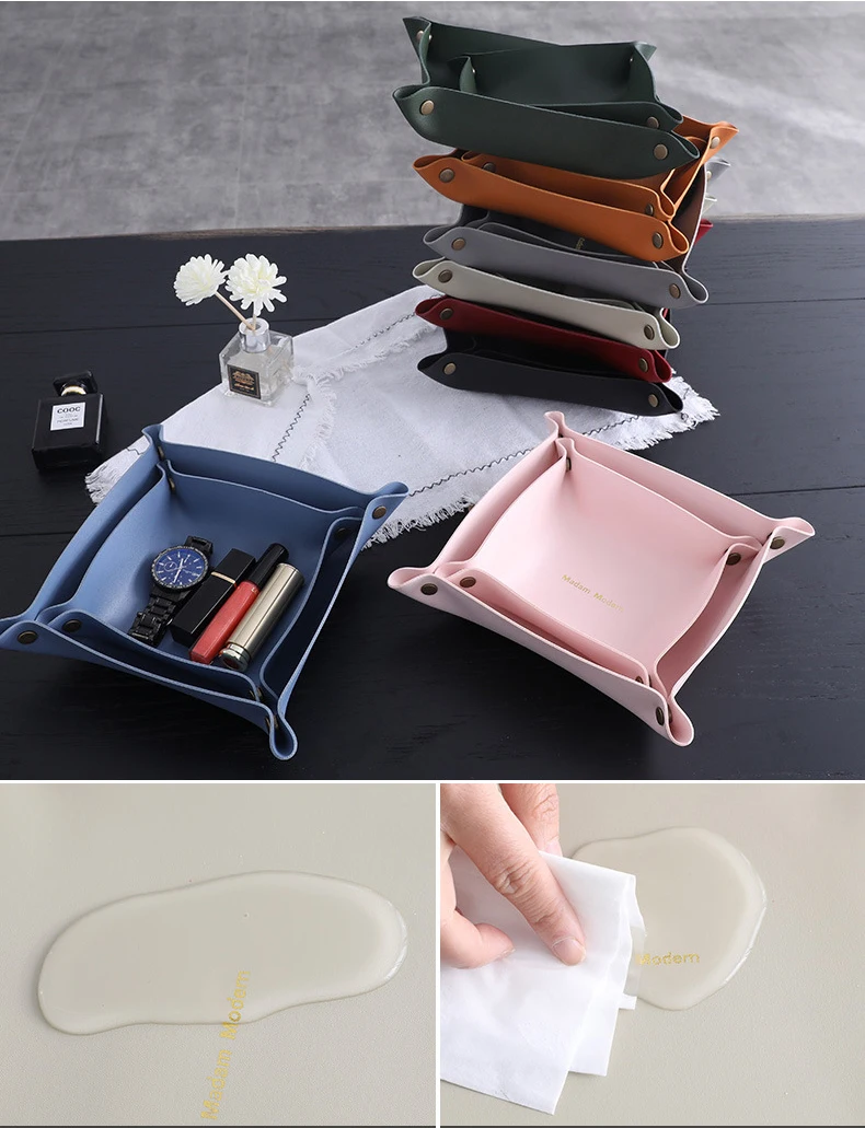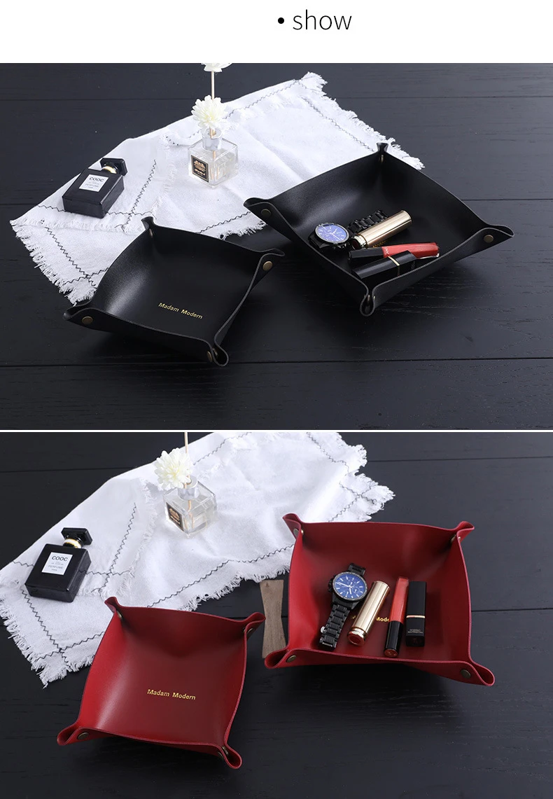 Изготовлен из высококачественной искусственной кожи, хорошая текстура, гладкая поверхность, прочная, прочная и износостойкая. Тонкая работа, простой и элегантный дизайн, простота в использовании, легко носить с собой, 4 кнопки с защелками для удобного складывания и разворачивания. Легко чистить, просто аккуратно протрите влажной тканью, чтобы восстановить блеск. Подходит для спальни, ванной комнаты, гостиной и офиса, для хранения ваших мобильных телефонов, часов, ключей, ювелирных изделий, монет и т. д.