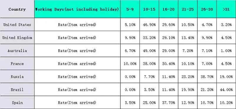 Мы всегда отправляем посылки обычной авиапочтой, и доставка занимает около 15-30 рабочих дней. Если вам нужны товары срочно, пожалуйста, выберите способ доставки DHL, Fedex или UPS и оплатите дополнительную доставку (5-10 дней, чтобы приехать).