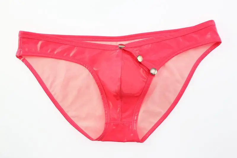 Трусы-брифы мужские из искусственной кожи, нижнее белье, джоки, с заниженной талией, Короткие трусы с пуговицами, с открытой промежностью, гей-трусы