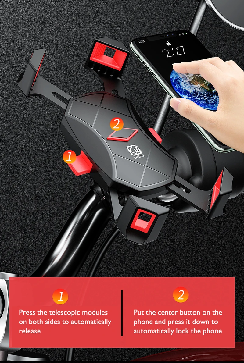 1. [блокировка и отсоединение одной кнопкой] четыре угловых рычага «Орел» убираются, а Центральная кнопка нажимается, когда телефон нажимается, она автоматически захватывает телефон. Когда вы хотите снять телефон в любое время, нажмите кнопку отпускания, чтобы разблокировать его. Управление одной рукой, прост в использовании.