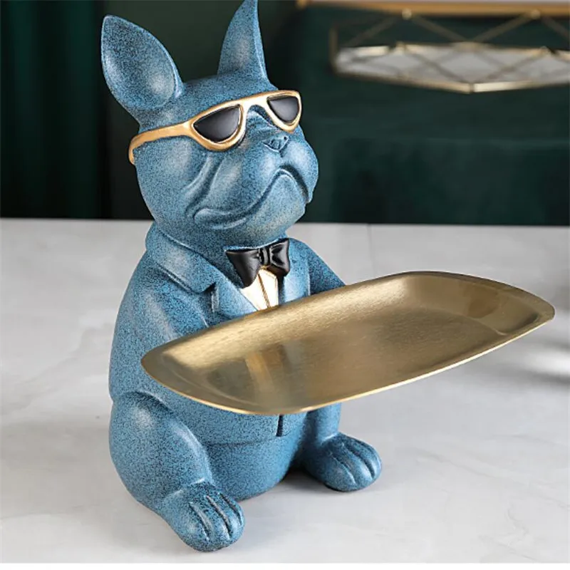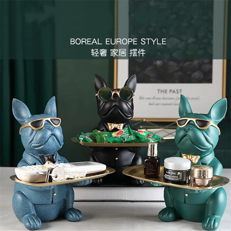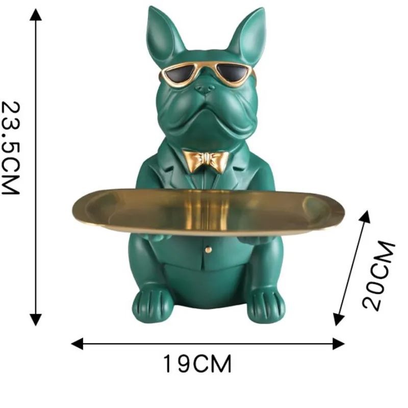 Статуя собаки размер: 23,5*19*20 см Цвета: 3 разных цвета, как на фото Материал: Высококачественная смола, продукт очень хорошего качества Особенности: модный стиль, Классная модель бульдога Функция 1: дом, гостиная, офис, магазин, украшение стола Функция 2: декоративная фигурка Функция 3: настольный лоток для хранения вещей Функция 4: коробка для денег, банк для монет