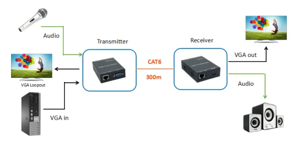 Оборудование обладает отличной обработкой изображения и передачей, делает передачу сигнала более плавной и стабильной,ЭтоНадежный, высокопроизводительный и эффективный способ расширения сигнала VGA.