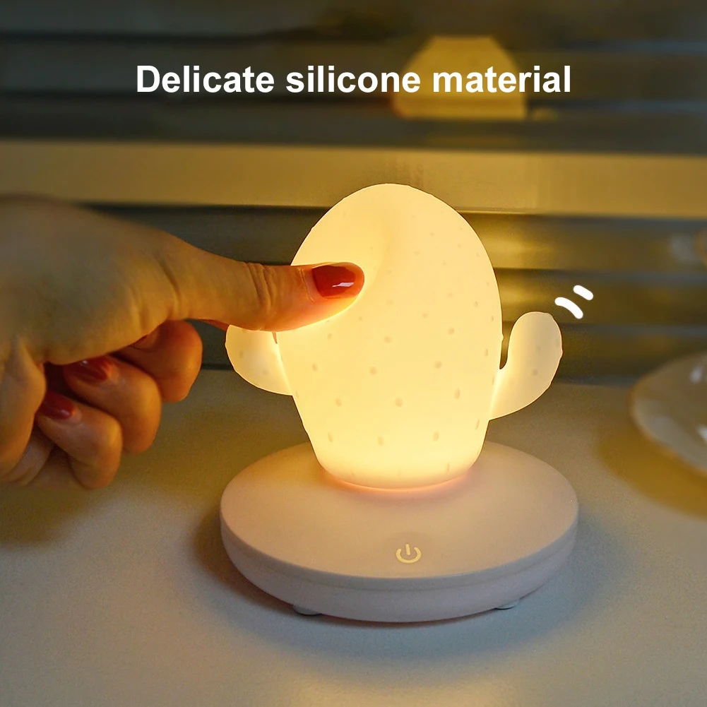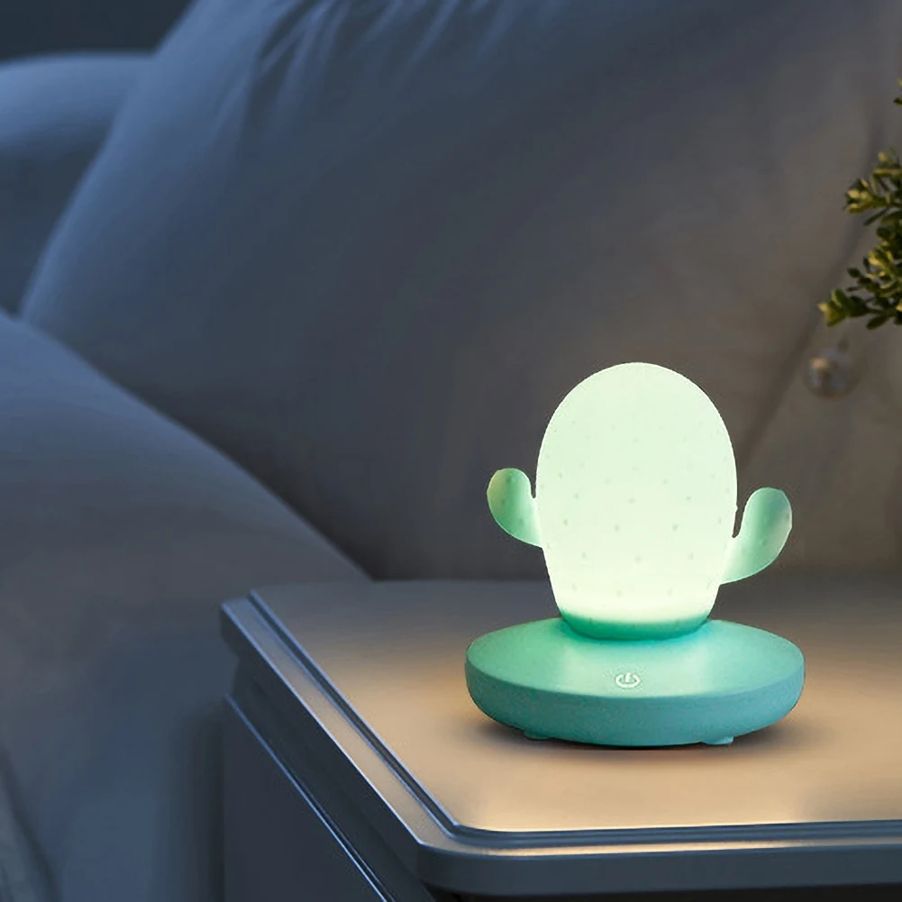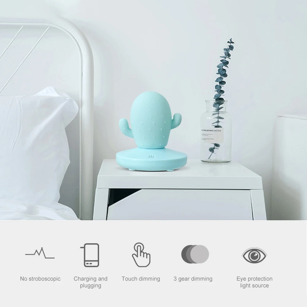 Cute Cactus Touch Dimming USB Rechargeable LED Bedside Lamp Night Light Decor