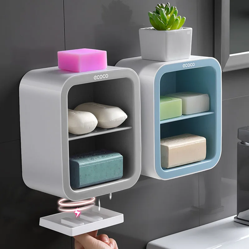 Настенный шкаф для мыла из нержавеющей стали, двухсекционная полка для ванной комнаты, пластиковый дренаж для мыла, комбинированный набор кухонных держателей