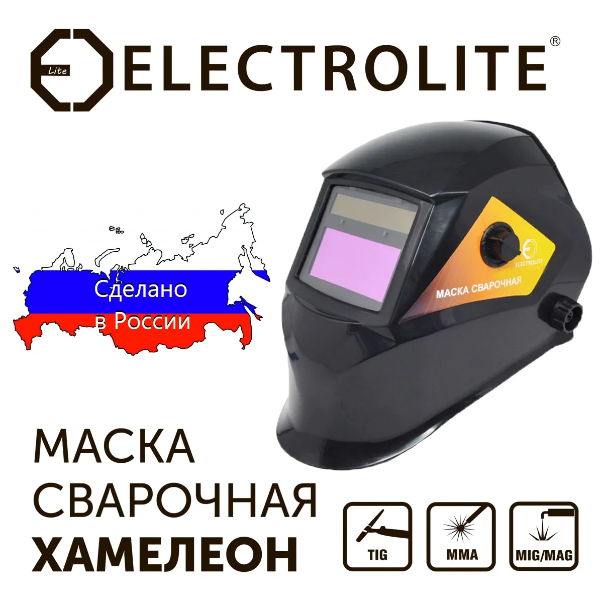 Сварочная маска хамелеон ELECTROLITE Ф-5 — предназначена для индивидуальной защиты при выполнении определённых видов сварки, для защиты глаз, лица и шеи от ожогов, ультрафиолетового излучения, искр, инфракрасного света и высоких температур. Щиток сварочной маски ELECTROLITE Ф-5 оснащен жидкокристаллическим светофильтром, оптическим электронным контроллером, солнечной батареей, и сменным аккумулятором.