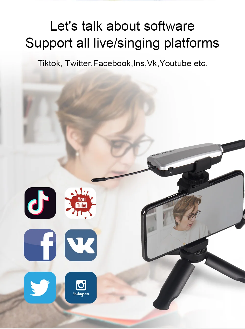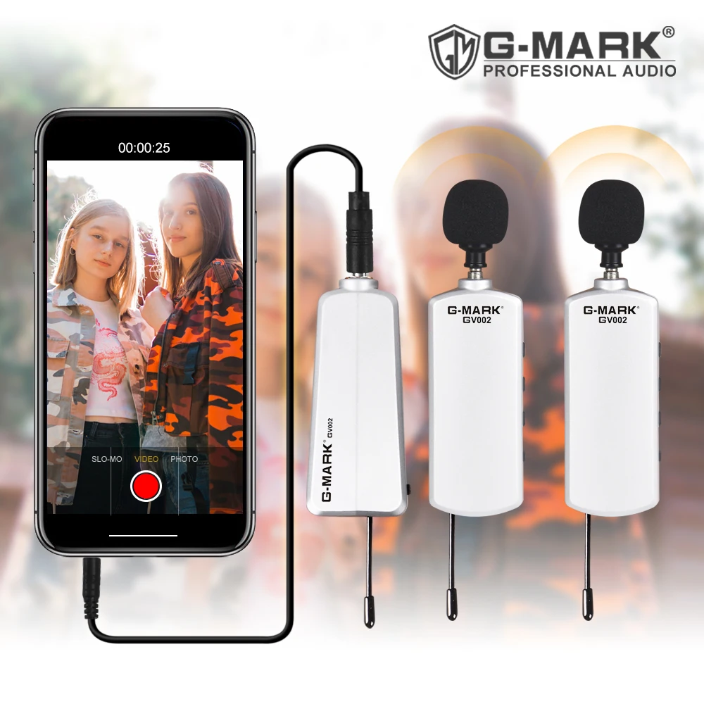 G-MARK GV002 интервью микрофон-это Беспроводная микрофонная система с небольшими размерами и полными функциями. Передатчик имеет встроенный электрический микрофон, который может быть непосредственно прикреплен к воротнику для использования, или может быть подключен к микрофону lavalier через внешний входной интерфейс, когда он используется в качестве сверхмаленького передатчика. GV002 использует глобальную неограниченную UHF частоту после включения приемника и передатчика, приемник и передатчик автоматически соединены успешно, и эффективное использование расстояния достигает 50 метров (открытый воздух). Она подходит для использования 3,5 мм TRS выход для подключения к цифровому/зеркальных фотокамер, видеокамер, диктофонов, планшетные компьютеры, USB-C порт телефонов и других устройств, чтобы помочь в подобрав высокое качество звука. Подходит для интервью, микро-видеозаписи или бизнес-презентаций.