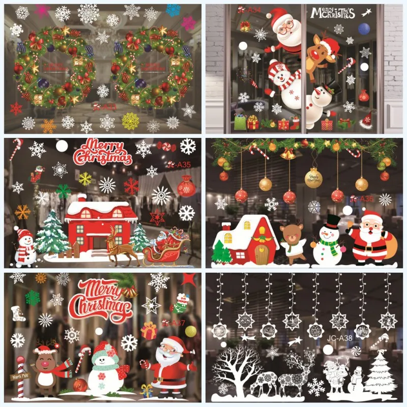 2021 большие рождественские наклейки на стену виниловые белые холодильники Санта Клаус новый год модный Декор окна украшения для гостиной съемные