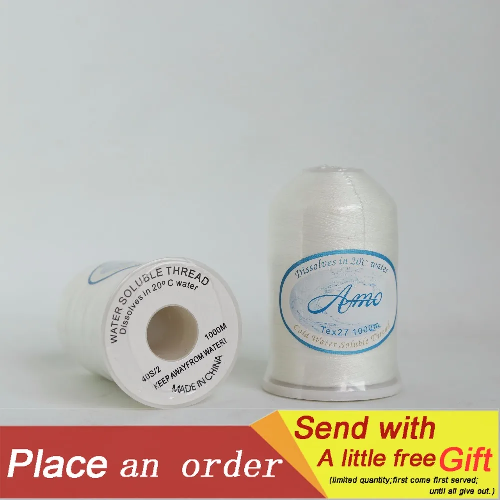 1000 м длинная сырая белая Водорастворимая швейная нить 20C Вымойте высушенную дополнительную Стеганую напыляющую нить для одежды DIY Ручная работа 40S/2
