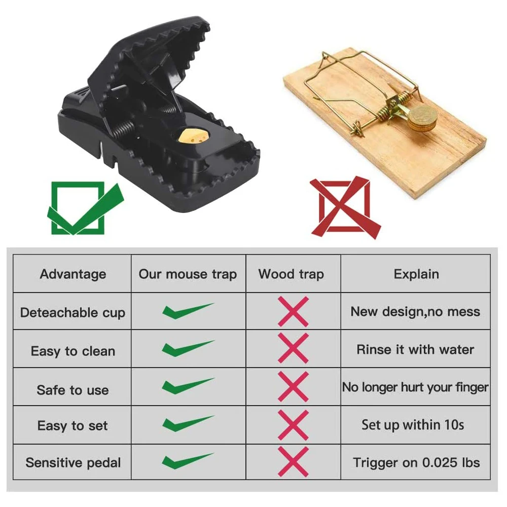 Высокая эффективность и высокая чувствительность-по сравнению с традиционными мышеловками из дерева или металла, эти мышеловки более эффективны и безопасны.