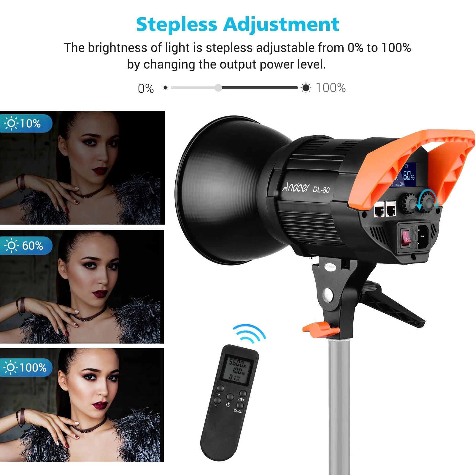 Высокая мощность 80 Вт:80 Вт COB светодиодный шарик может непрерывно выпускать стабильный и эффективный светильник-источник. Сделайте ваши фотографии или видео ярче, чем вы ожидали, без вспышки, сделайте ваши фотографии более яркими и естественными. Светильник плавно регулируется от 0% до 100%, изменяя уровень выходной мощности.