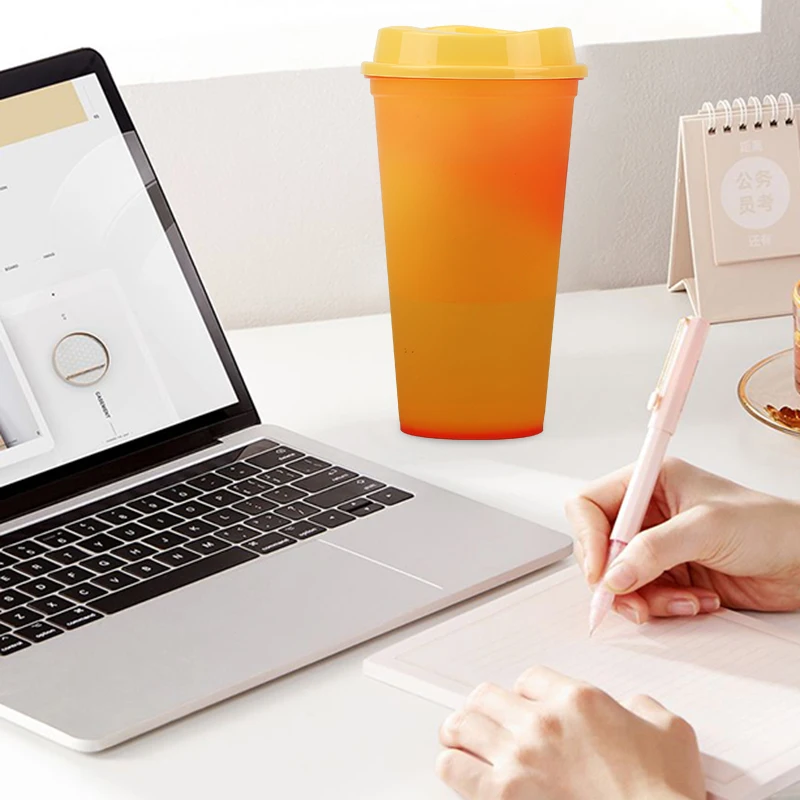 ВМногоразовая меняющая цвет кофейная чашкаСВыглядят однотонно, прежде чем меняют цвет, но добавляют горячую воду и наливают в свой любимый зимний напиток, как кофе, и он превращается в красивые цвета, которые соответствуют крышке кофейной чашки