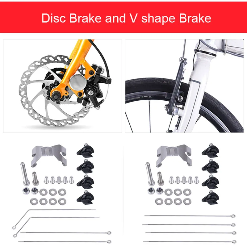 Материал: кронштейн из нержавеющей стали + высокопрочный хромированный пластик Подходит для большинства складных велосипедов на рынке (некоторые велосипедные установки могут быть изменены самостоятельно) Размеры: ширина: 4,8 см Вес: 295 г Складной велосипед 14/16/18/20 дюймов крылья D = дисковое тормозное колесо V = V тормозное колесо Костюм для шиномонтаж ниже 1,75 Использование обычной версии (ширина 48 мм) Материал: кронштейн из нержавеющей стали + высокопрочный хромированный пластик Подходит для большинства складных велосипедов на рынке (некоторые велосипедные установки могут быть изменены самостоятельно) Примечание: V держатель тормоза прямой, держатель дискового тормоза Согнут. Посылка: 2 шт. Велосипедное крыло (переднее/заднее) 2 пары держателя крыла с винтовыми крышками, винтами и т. д.)