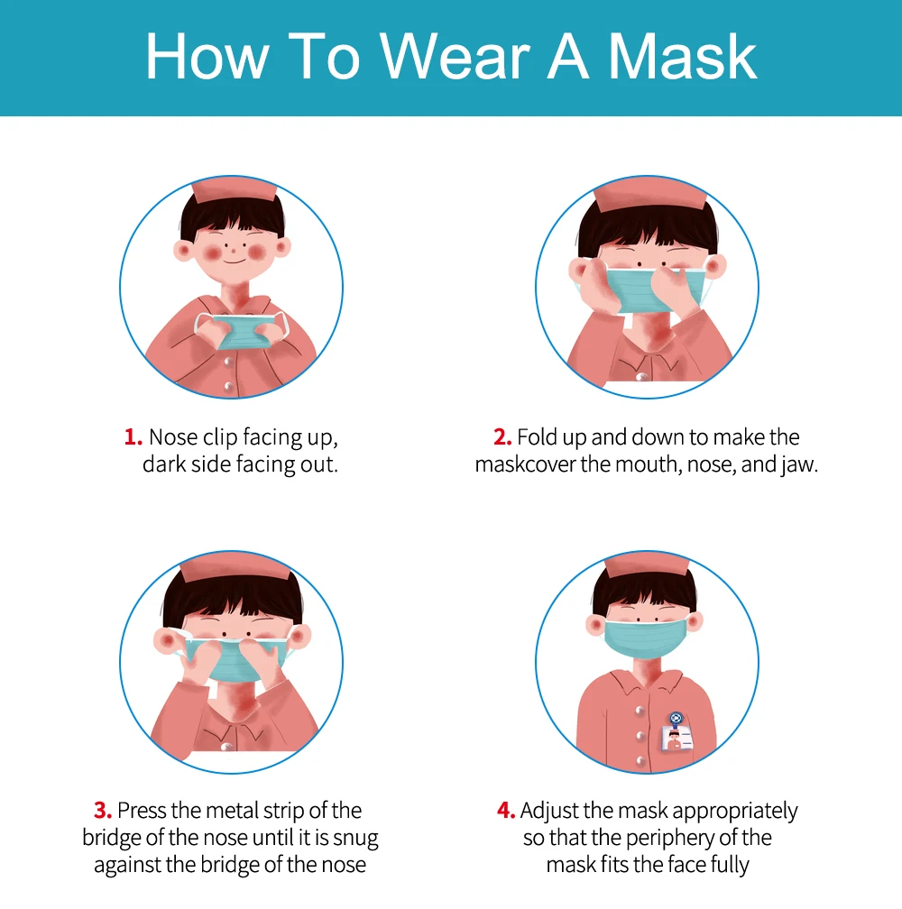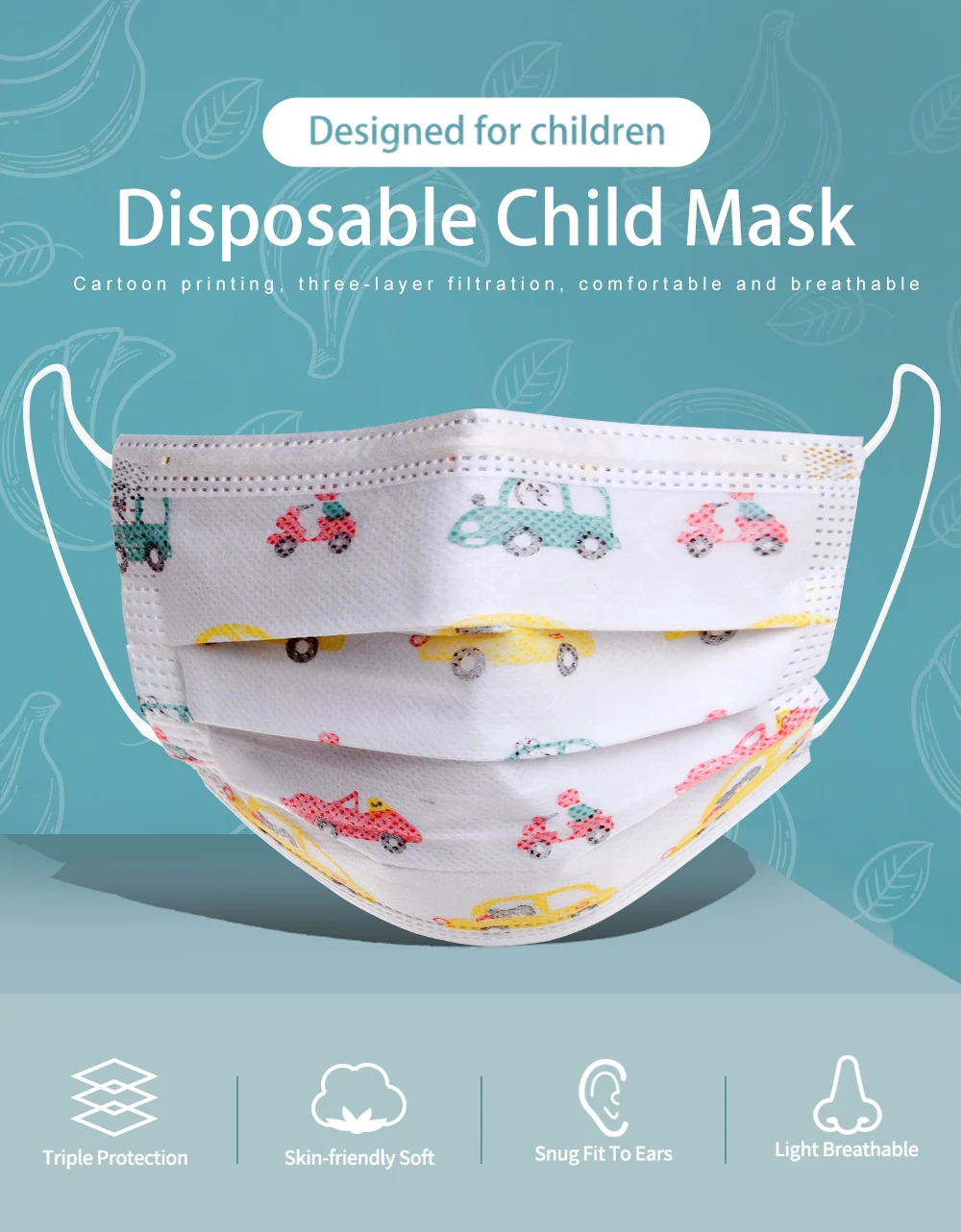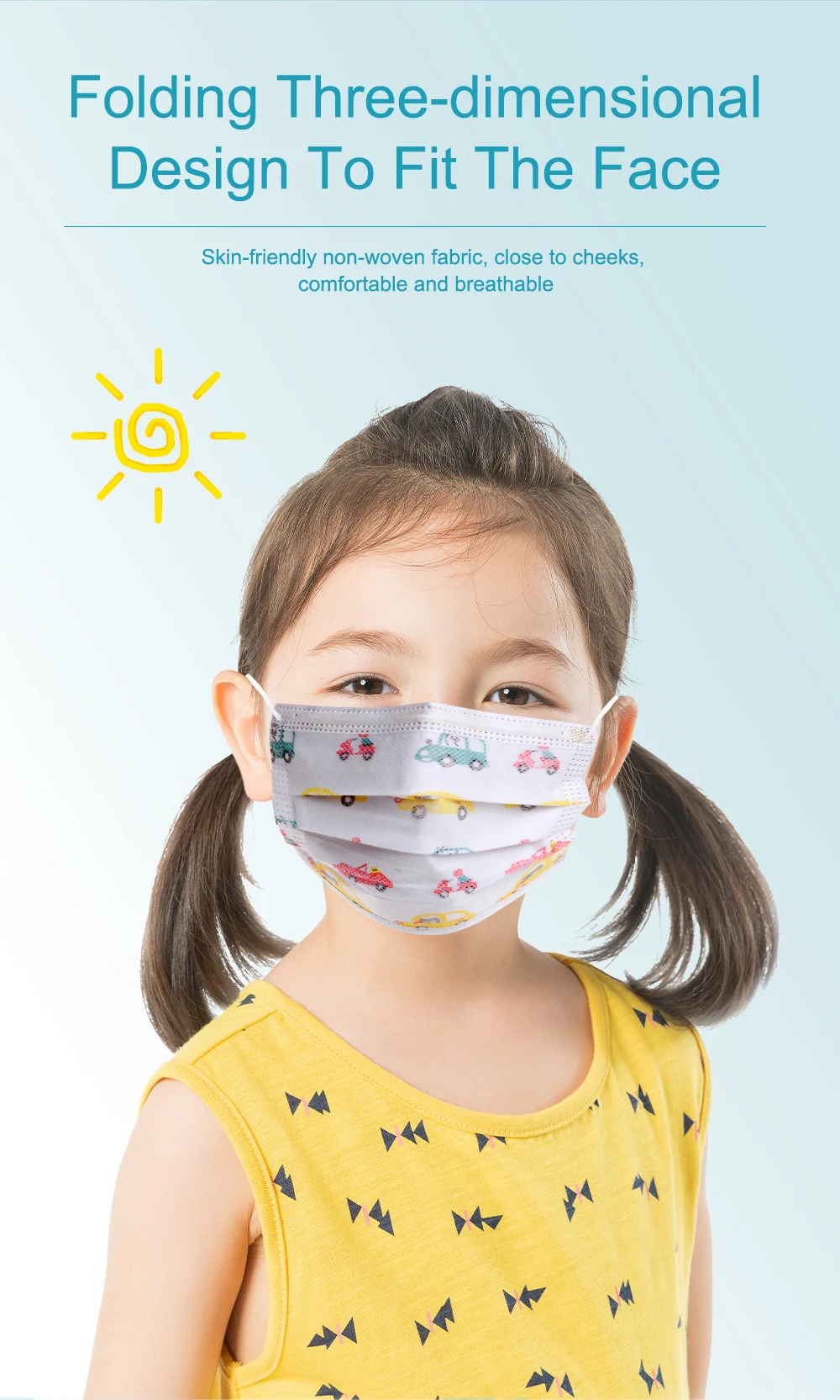 Disposable mask kids 3-layer daily mask Product parameters: Material: Three-layer non-woven Suitable season: spring, autumn, winter, summer Color: Blue,White,Black,Pink Mask style: ear type For children Size: 14.5cm * 9.5cm Product features: 1. New fabric PP non-woven fabric, soft and clear, comfortable and breathable 2. Seamless binding process 3. Three fold design, more breathing space on the face 4. Plastic nose strip, aluminum-plastic nose strip, 5. Multi layer protection for your respiratory health How to wear the mask: 1. Cover the mouth and nose, and hang the two side straps on the ears 2. Fix the bridge of nose according to the shape of nose to prevent dirty air from entering. 3. Please pull the mask to the lower jaw to present the three-dimensional breathing space immediately. Please be kindly noted,the listed product is produced and distributed abroad and subject to the laws of its country of origin.