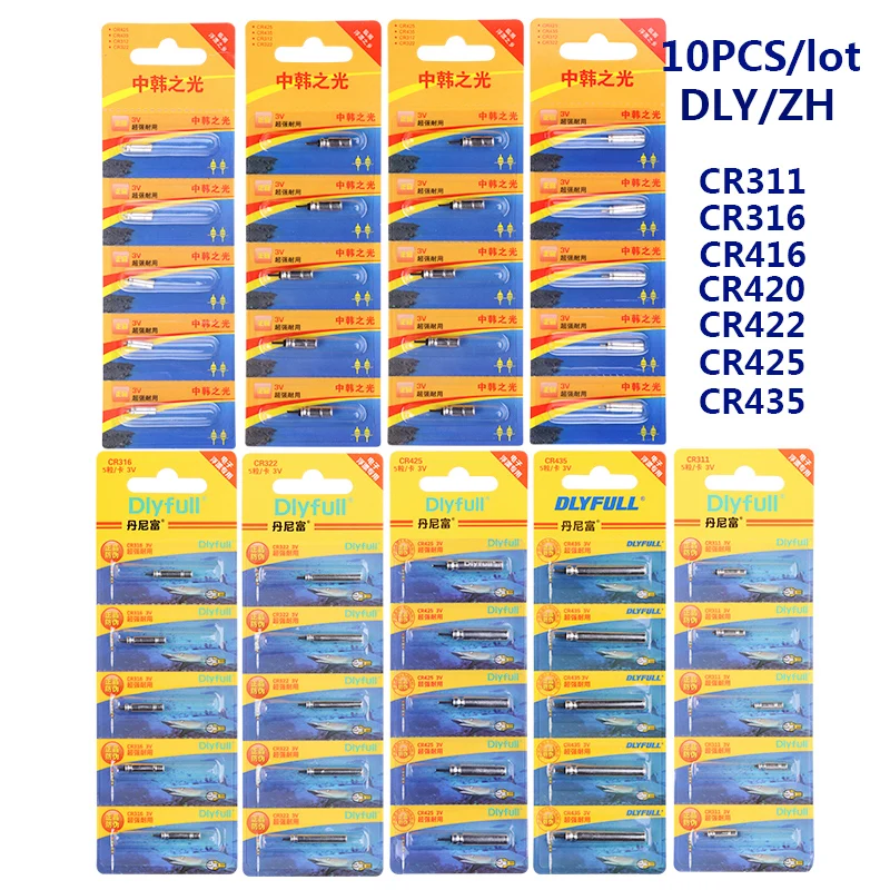 10 шт./лот CR311 CR316 CR322 CR416 CR420 CR425 CR435 DLY ZH поплавки с литиевым штифтом светящиеся электрические рыболовные снасти 3 в