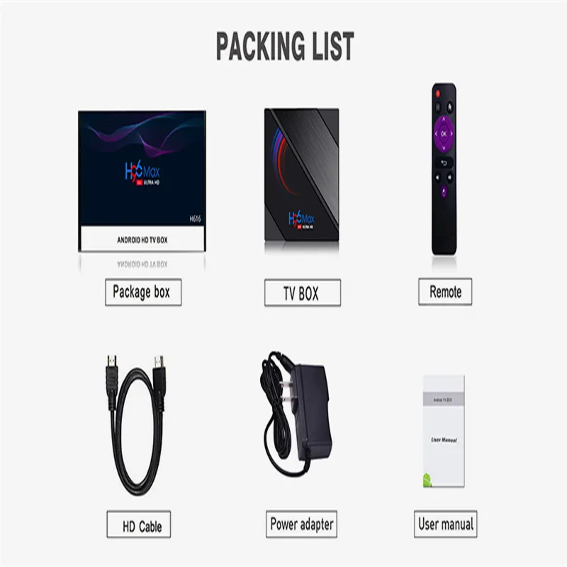 Адаптер питания, кабель HDMI, av-кабель, пульт дистанционного управления, подарочная коробка