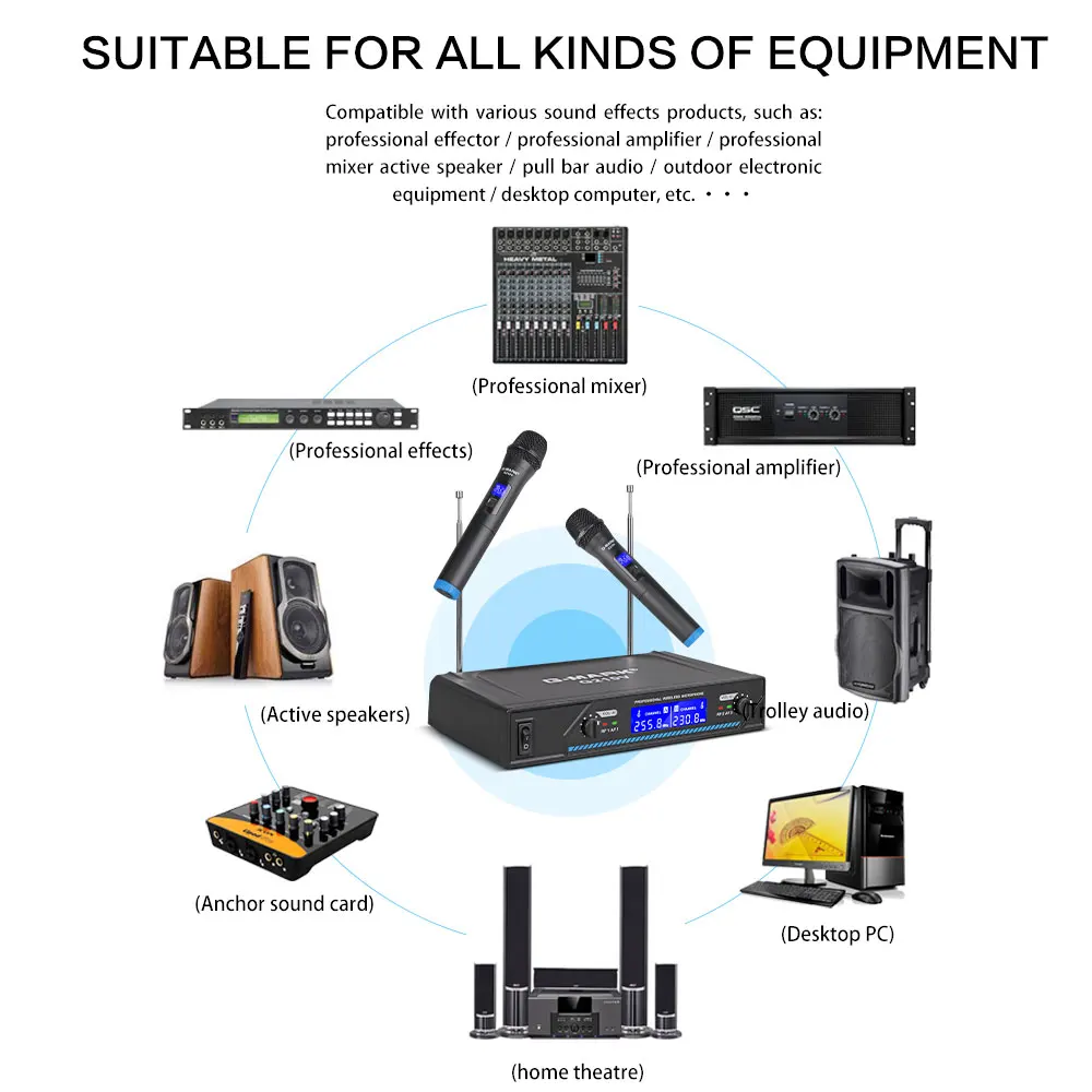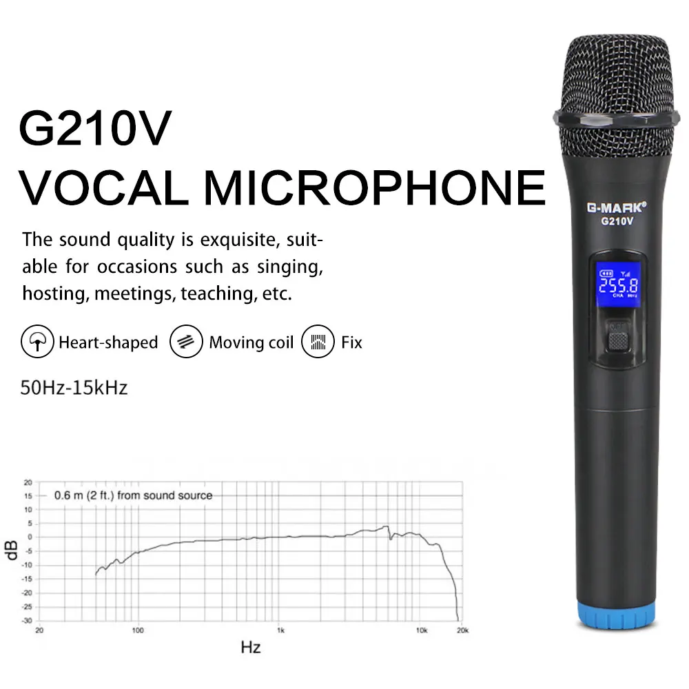 G210V-это беспроводной микрофон, предназначенный для маленьких и средних речевых, вечерние и уличных поющих приложений. Красивый дизайн, простой в использовании, ручной микрофон, прочный. G210V имеет металлическую антенну. С свободным расстоянием приема 80-100 метров пользователи могут перемещаться в парках, классах и других местах и избавляться от ограничений микрофонных кабелей. Характеристика: 1. Двухканальный дизайн, два микрофона можно использовать одновременно, подходит для домашних развлечений, караоке, обучения, церкви и других случаев. 2. Частотный Диапазон VHF передает сигналы с частотным диапазоном между 230-250 МГц 3. Приемник и передатчик оснащены ЖК-экраном, рабочий статус четкий с первого взгляда 4. Отдельная конструкция антенны для усиления полученного сигнала и выделения внешнего вида высокого класса 5. Включает в себя 6,3 мм выход и два сбалансированных выходов, подходит для подключения различных внешних устройств 6. Технология обработки Microphone потребеление энергии является 130mA, питание от 1,5 V AA * 2 перезаряжаемый аккумулятор, используется для более чем 8 часов. 7. Расстояние беспроводного использования: около 80-100 метров (без барьера) 8. Аудио и данные передаются через 32-битный шифрования и независимый идентификационный код, эффективное предотвращение помех и помех 9. Приемопередатчик использует 8-битный режим синхронизации инфракрасной передачи 10. Приемник может наблюдать состояние работы аккумулятора передатчика с первого взгляда 11. Принять высокоточную динамическую головку микрофона, чтобы сделать ваш голос более чистым и истинным Особенности продукта Диапазон несущей частоты: 230-250 МГц Технология цифровой передачи аудио Ультра-низкая задержка звука. Режим дискретизации аудио: 48 кГц. Частотный диапазон: 50 Гц-18 кГц Получение автоматического сканирования Открытая среда Теоретическое расстояние передачи: 80-100 метров Характеристики ручного микрофона Тип микрофона: динамическая катушка Пикап: в форме сердца Частотный диапазон: 230-250 МГц Полоса пропускания RF: 60 МГц Частота: 2*16 Мощность передачи: 10 мВт Частотная характеристика: 50 Гц-18 кГц Динамический диапазон: 96 дБ Гармоническое излучение: <-50dBc Искажение: <0.1% Источник питания: аккумулятор № 5 Характеристики приемника Частотный диапазон: 230-250 МГц Полоса пропускания RF: 60 МГц Частота: 2*16 Отношение сигнал-шум: 96 дБ Чувствительность приема: -95dBm Применение: небольшие и средние лекции, вечеринки, уличные пения, DJ, группы и т. Д.