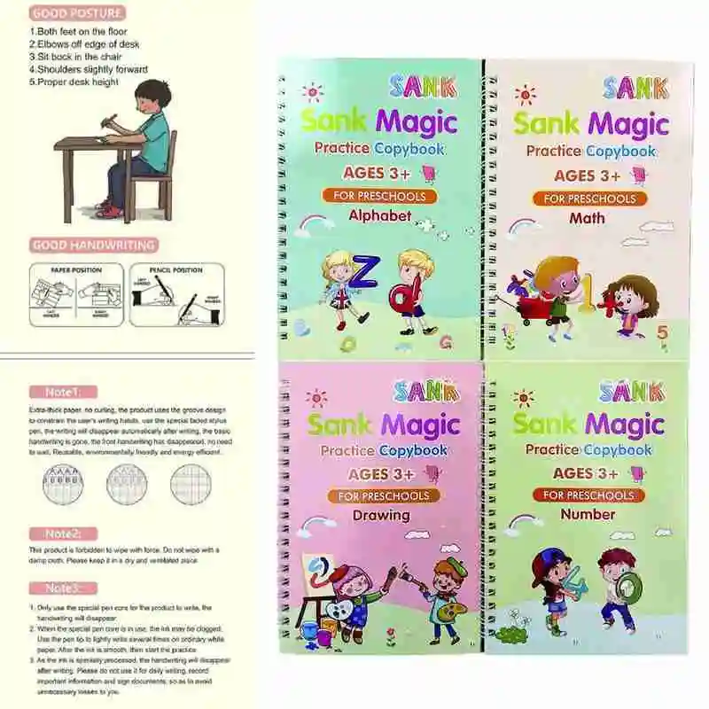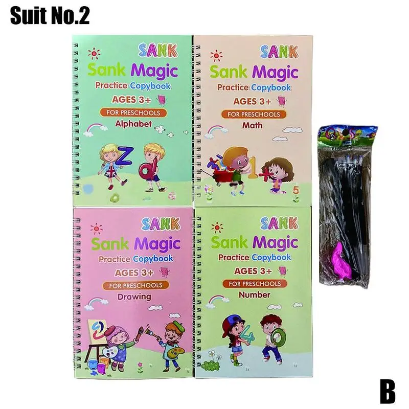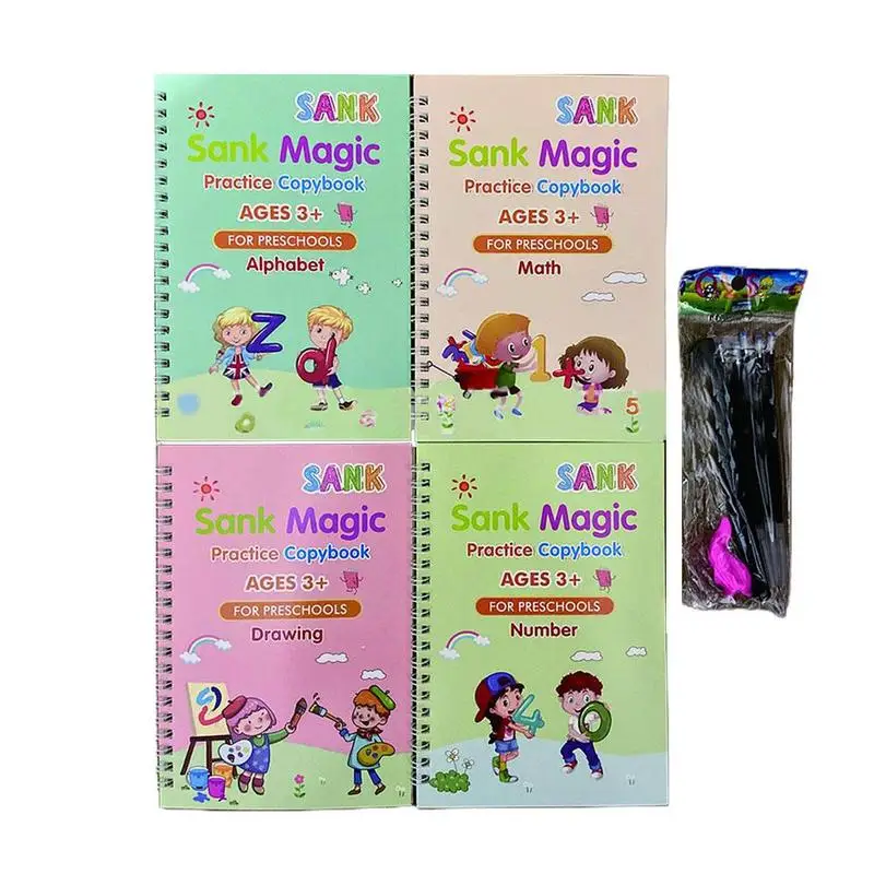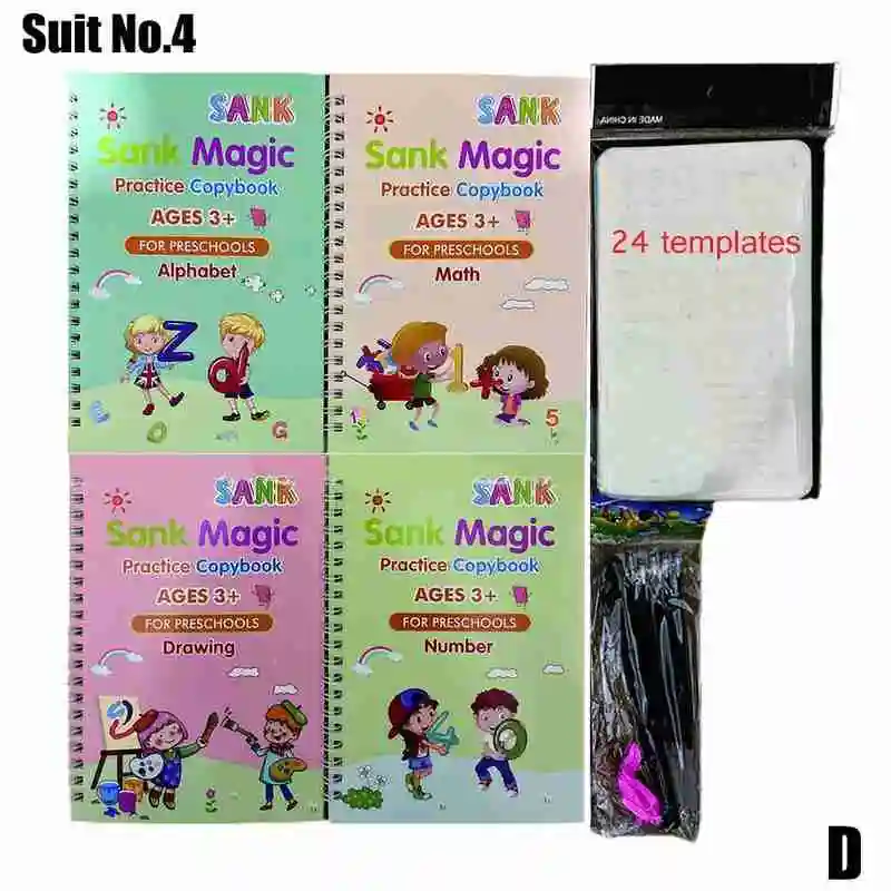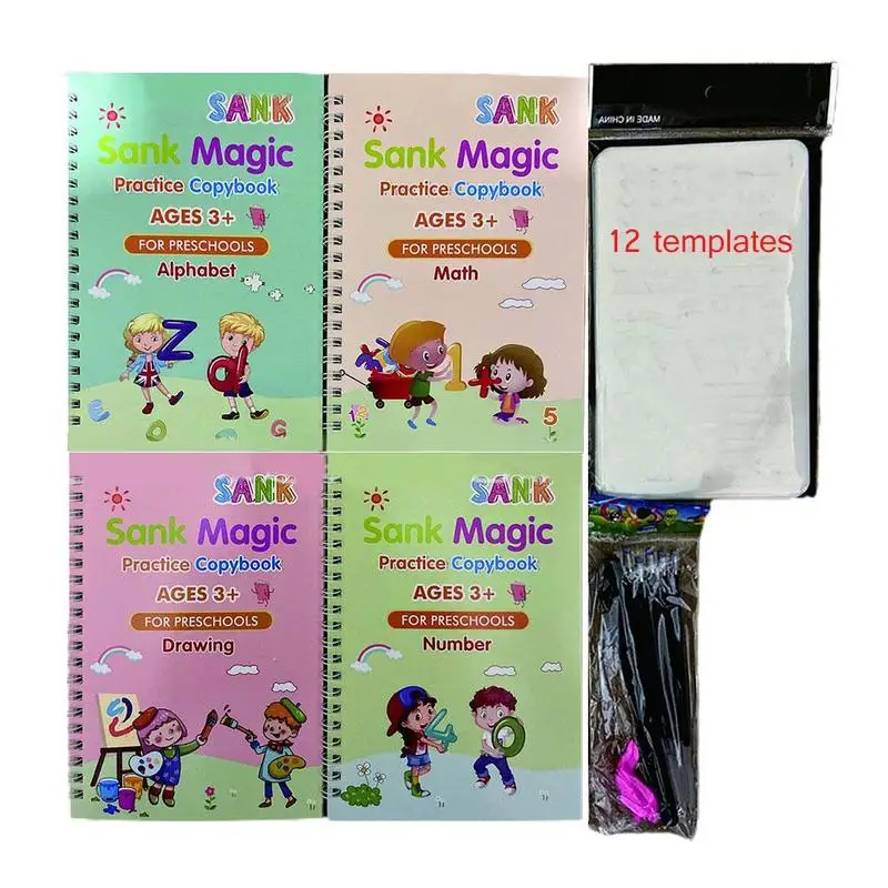 4 шт. копировальная книга каллиграфии, 1 шт. ручка, 5 шт. пополнение (дополнительно: 12 шт. шаблон каллиграфии или 24 шт. шаблон каллиграфии)