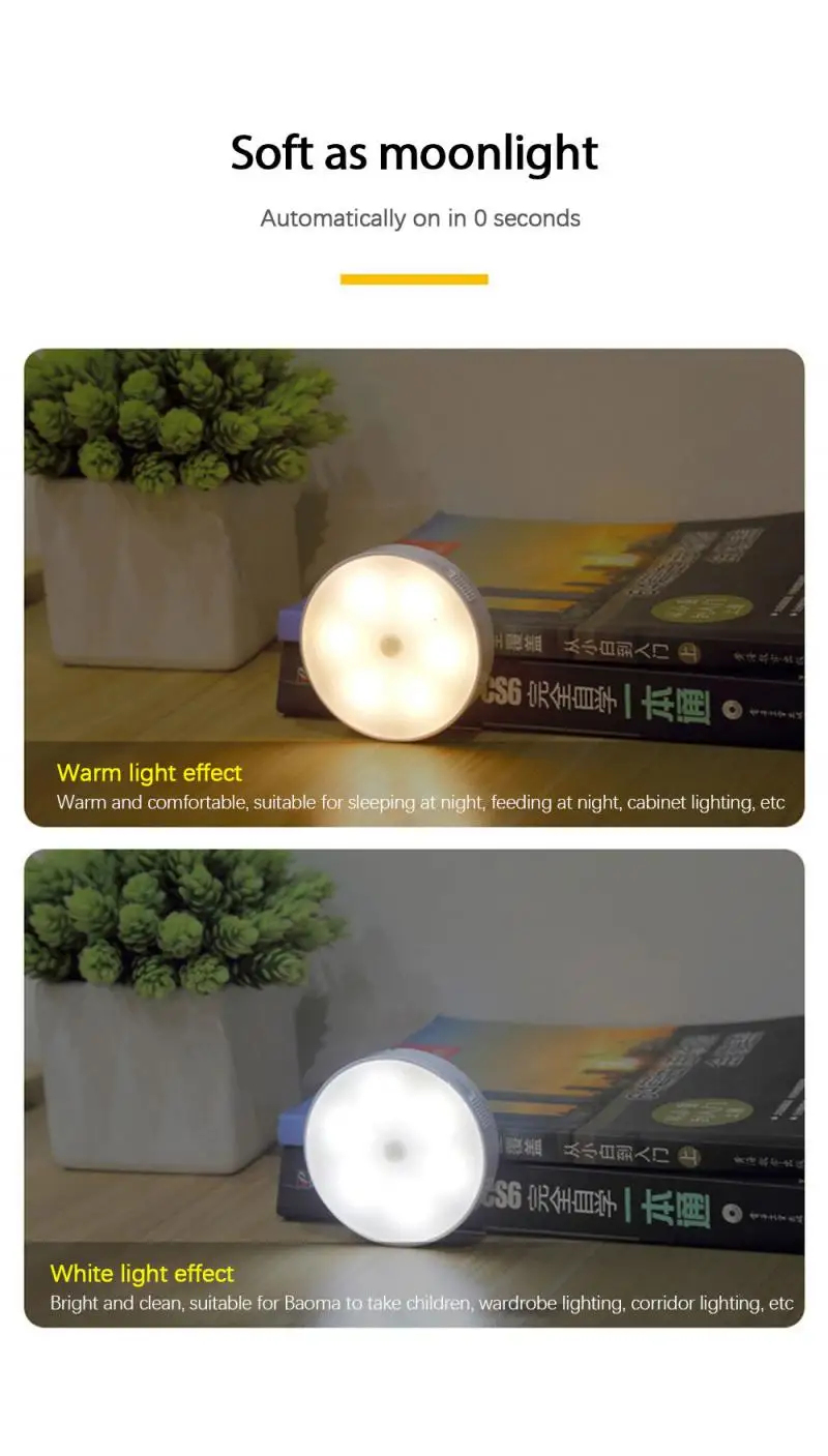 + Индукция корпуса: светильник включается при ходьбе возле светильник. Затем он выключается после того, как вы пройдете мимо.