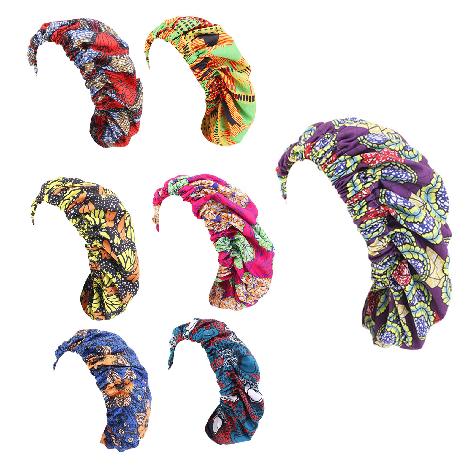 Новинка, очень большая двухслойная ночная рубашка с принтом в африканском стиле, ткань с принтом Анкары, эластичная шляпа с широкими полями, шапка для ночного сна