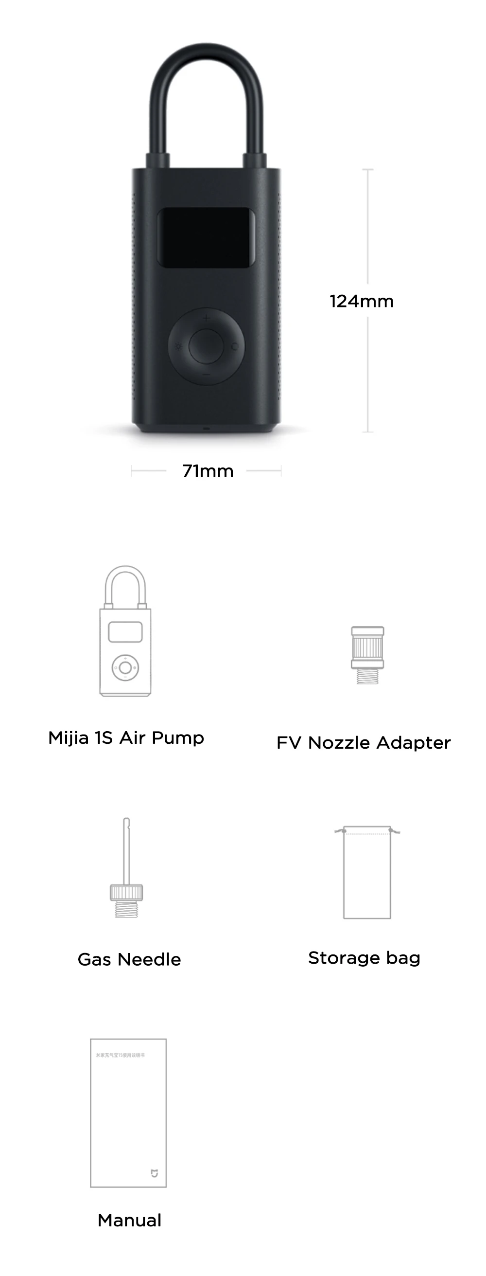 • Product size: 124x71x45.3mm (without air pipe)