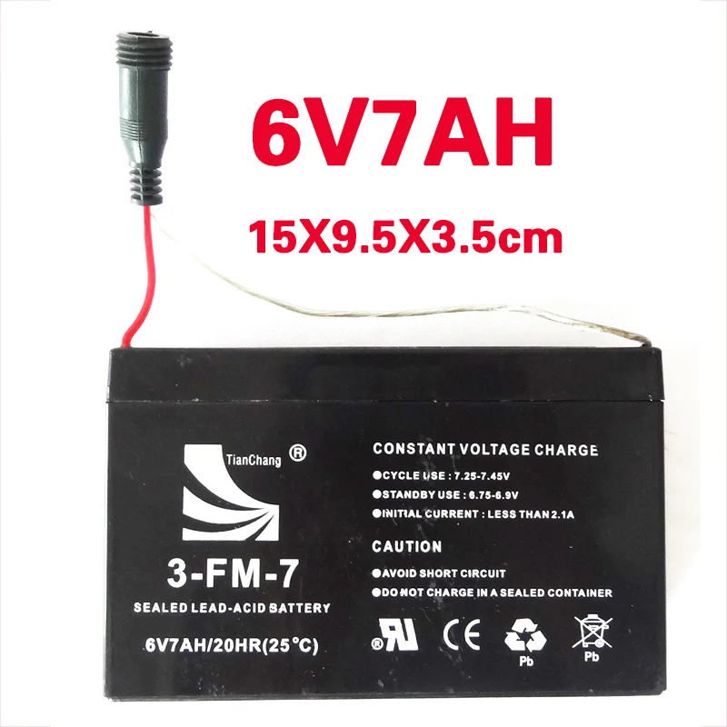 6V7AH Battery :Charging can be done again in about 4 months.Battery size 15X9.5X3.5cm