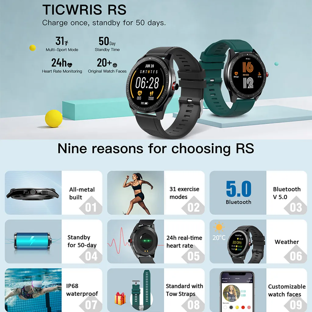 TICWRIS-RS Smart Часы 1,3 дюймов ультра-тонкая 9 мм 50 дней в режиме ожидания 31 спортивных режимов