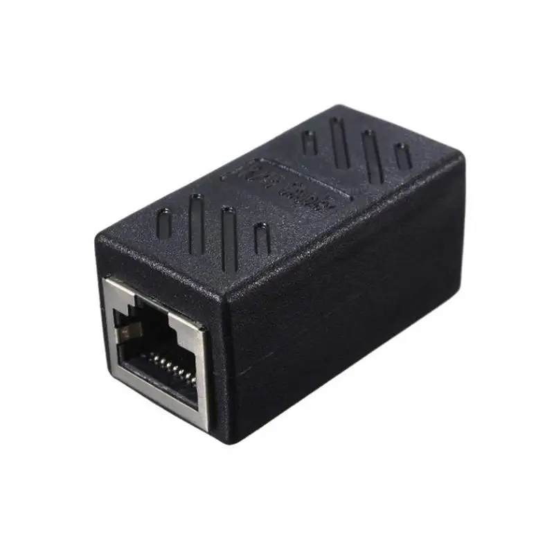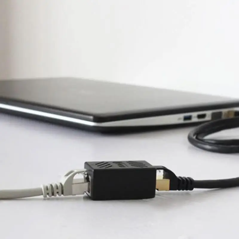 Помогает подключиться к 2 сетевым кабелям для расширения существующей длины кабеля и не влияет на скорость сети.