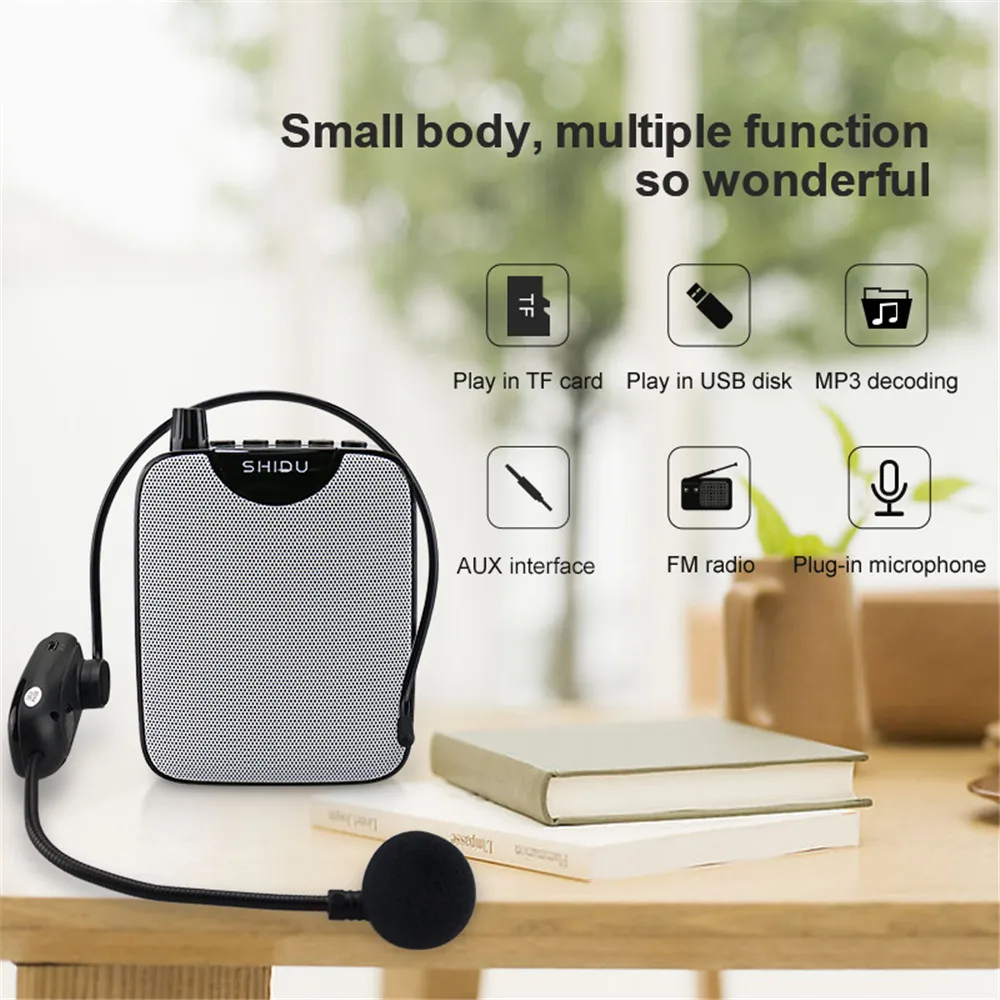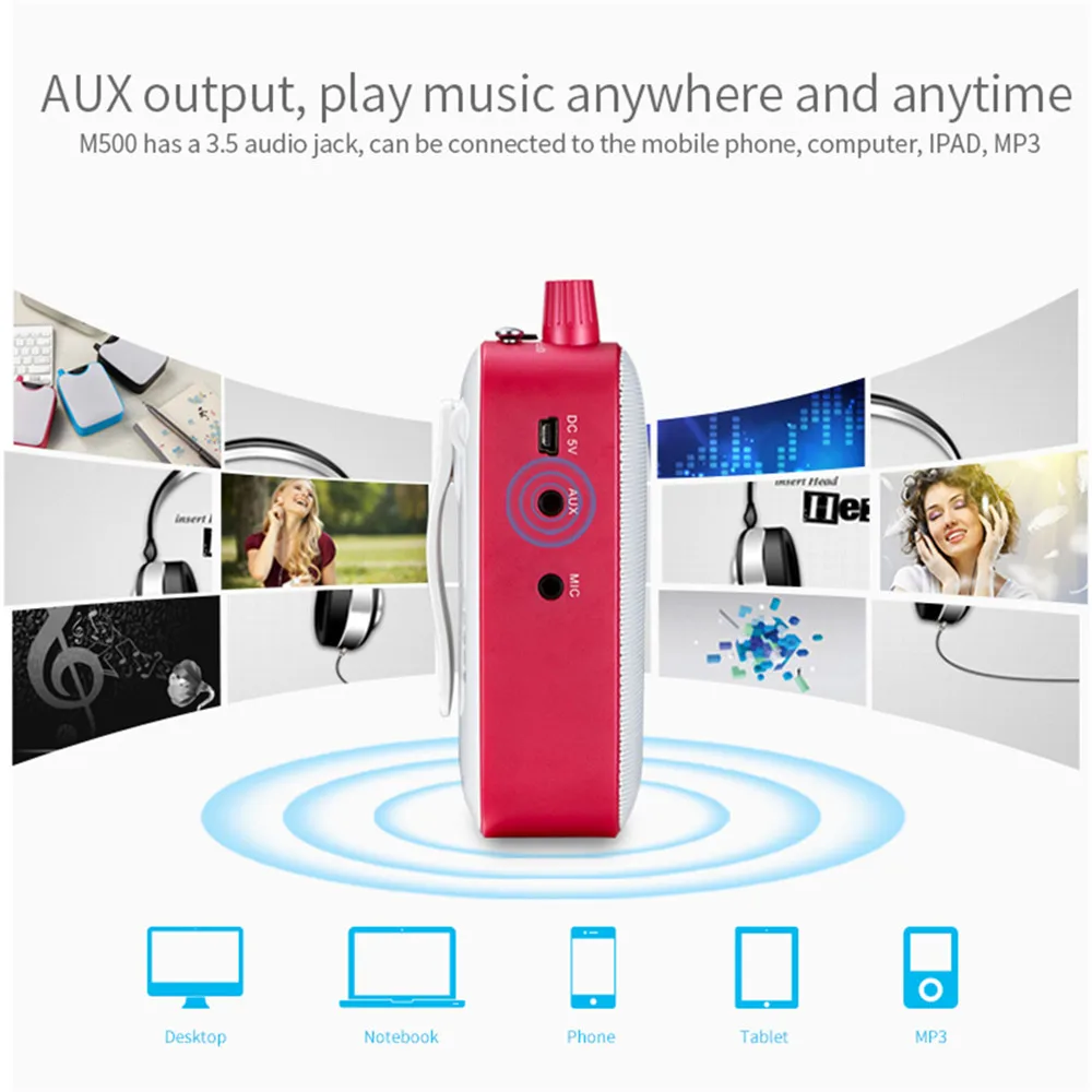 SHIDU 10 Вт портативный усилитель голоса динамик беспроводной UHF микрофон мини Hifi AUX аудио стерео FM радио динамик s для учителя M500