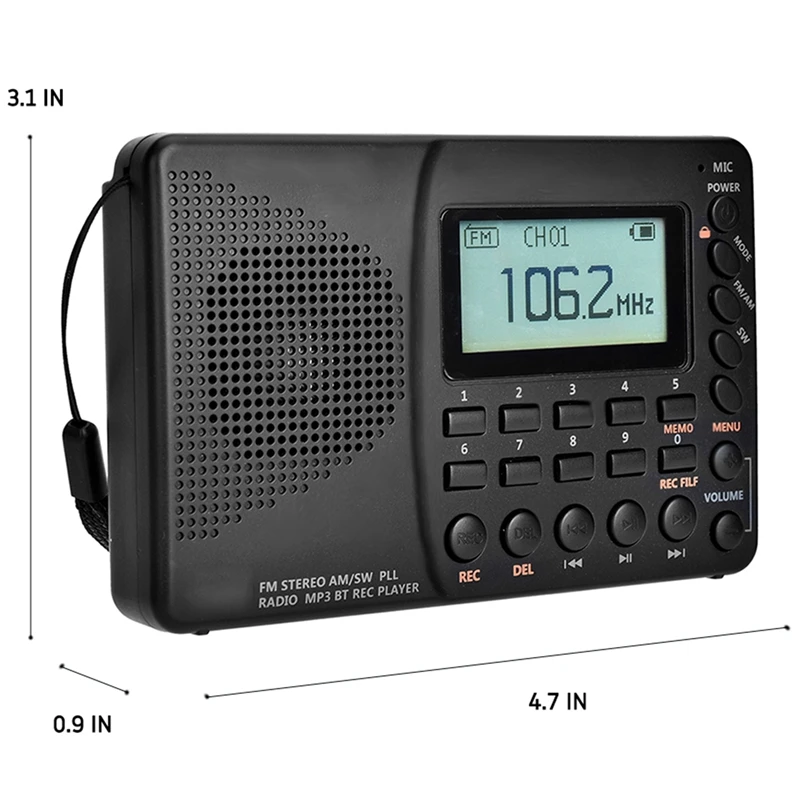K603 с портативным беспроводным Bluetooth Радио имеет все необходимые функции: FM / AM / SW band, а также имеет 3 режима записи, бас музыкальный плеер, который может воспроизводить MP3 и WMA файлы. Вы можете записывать свою любимую музыку или говорить на радио, и вы можете использовать встроенный микрофон для записи внешних звуков. Это универсальное радио не только позволяет наслаждаться удовольствием радио, но и приносит вам большое удовольствие.
