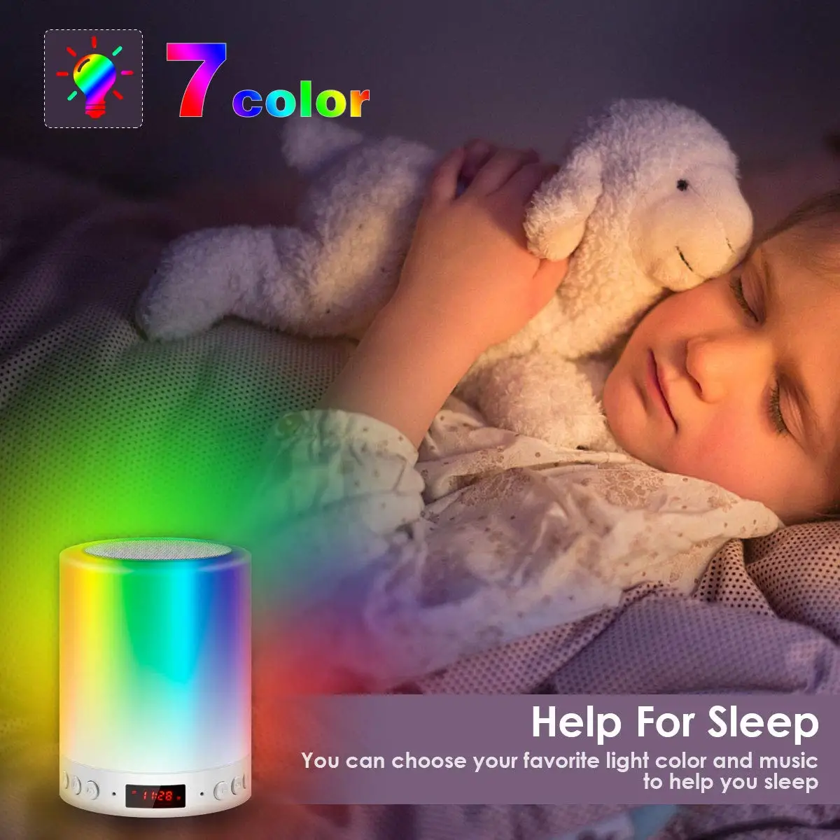 ♫Bluetooth-динамик и режим часов♫: Прикроватная лампа с сенсорным экраном через карта TF / Micro SD/3,5 мм аудио кабель с поддержкой. Bluetooth динамик настольная лампа может поддерживать 10 часов воспроизведения музыки, воспроизведение MP3 / WMA / WAV.De часы и функции будильника. .. Нажмите кнопку сигнализации, чтобы отменить будильник♫Идеальный подарок♫: Есть крючок в нижней части сенсорной светодиодной прикроватной лампы, руководство по французскому, легко носить с собой. Идеально подходит для офиса, кухни, сада, общежития, автомобиля и других видов деятельности в помещении и на открытом воздухе. Perfait Подарочная музыкальная атмосферная лампа для ваших друзей, ваших семей, вашего коллеги