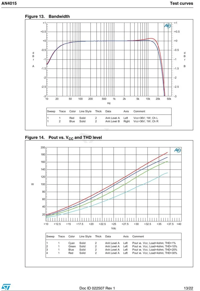 Amplifier's output power: When DC=36V, 160W + 160W, RL=4ohm, THD=10%; 120W+120W, THD=10%,