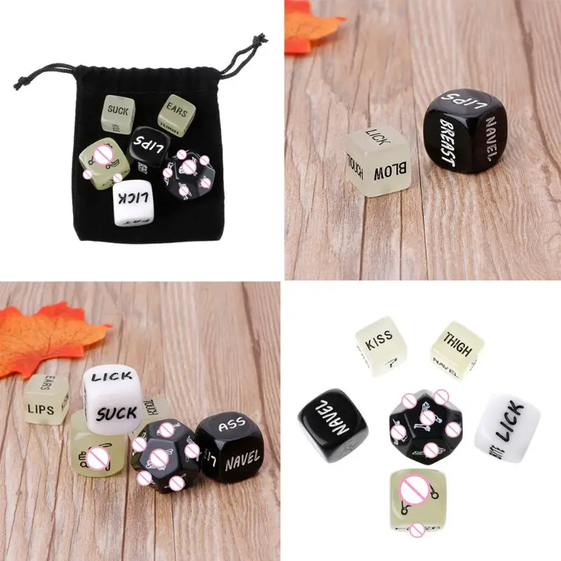 Описание:-эти взрослые секс кости делают для идеального подарка новизны для пар или молодоженов. -Сделайте авантюрный подарок на день рождения или Рождество для влюбленных, потрясающие вечерние игрушки для холостяков или девичника или набор для любви! -36 любовь, вариантов, ласк действия для него или ее, чтобы согревать вас до метания на 6-кубика для того, чтобы определить, какой это все вплоть до! -Это игра, которая не имеет проигравшей и помещается в кармане. Вы можете использовать его в любом месте с любым желаемым. -Эти секс-кости для пар подарят вам больше удовольствия в спальне. Параметры:-Материал: акриловое волокно-Размеры: 1,6 см-2 см. Посылка включает в себя: 1/2/3/4/5/6/7 шт сексуальные игральные кости или 1 шт черный бархатный мешок
