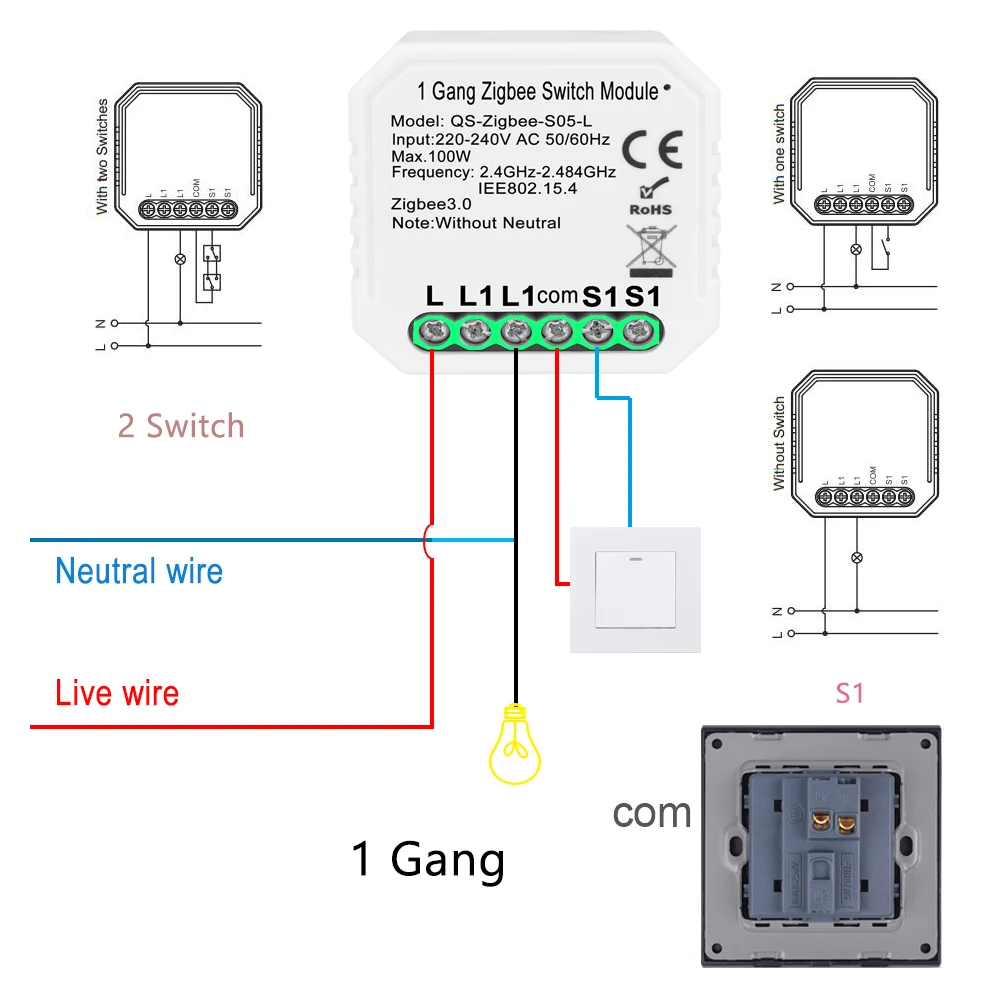 Характеристики просукта: 1. Этот умный модуль Tuya ZigBee 3,0 разработан специально с протоколом ZigBee 3,0, совместим с Tuya ZigBee hub, чтобы реализовать всю связь вашего дома, действительно хорошая замена нестабильного Wi-Fi. Протокол ZigBee 3,0 с мини-дизайном костюмы для ЕС/настенный переключатель стандарта Великобритании коробка, И легко спрятать его в вашу скрытую настенная коробка переключателей вашего традиционного переключателя без какого-либо влияния на ваш оригинальный стиль украшения, чтобы сделать его умным, предоставляя вашим устройствам максимальную мощность включения/выключения, умный макияж и конвертировать большинство любых совместимых продуктов в умные; Традиционный переключатель и этот умный модуль могут работать независимо без помех. (Примечание: Этот модуль подходит только для перекидного выключателя, см. Рис. 2 для получения подробной информации.)