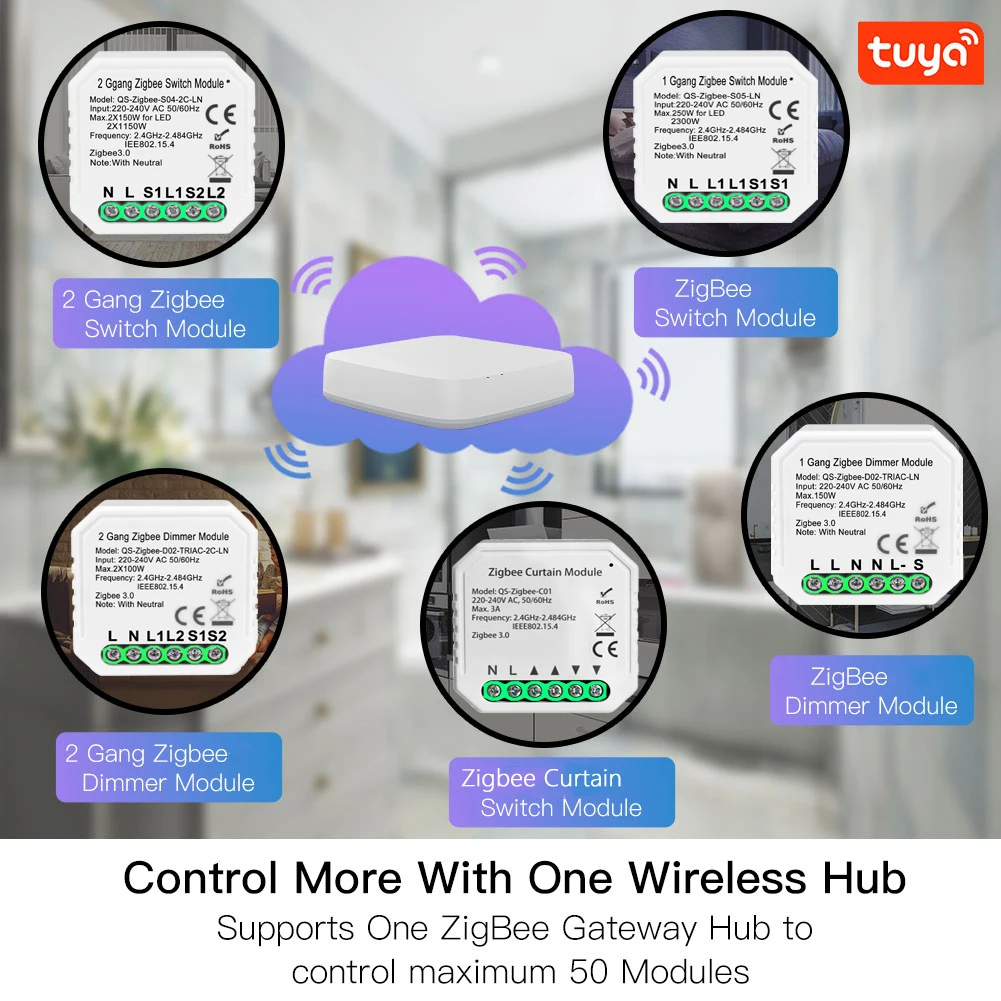-Релейный модуль Tuya ZigBee 3,0 должен работать с Tuya ZigBee Hub, пожалуйста, убедитесь, что у вас уже есть концентратор Tuya ZigBee, если нет, пожалуйста, купите концентратор Tuya ZigBee в нашем магазине. -Это реле ZigBee модуль не может работать с ZigBee Hub других брендов, пожалуйста, убедитесь, что ваш ZigBee концентратор от Tuya. -Пожалуйста, свяжитесь с нами онлайн, если у вас есть какие-либо вопросы, мы являемся производителем.