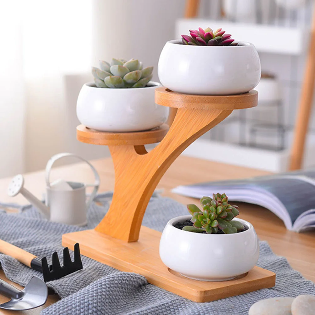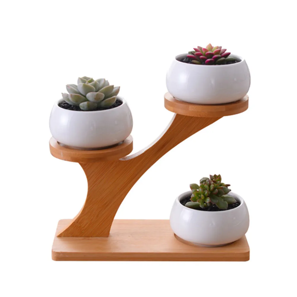 Керамический держатель для растений, суккулентов, цветочных горшков, Бамбуковая полка, настольное украшение