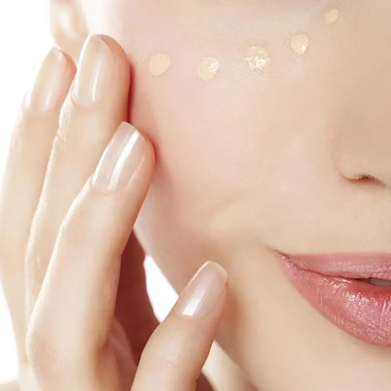 01. Нажмите и Возьмите соответствующее количество изолирующего молока и наведите его на лоб, под глазами и щекой