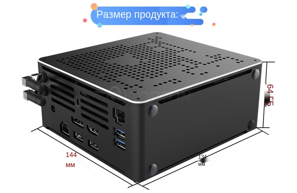 1xMini PC, 1xPower Adapter, 1xPower Cord, 1xScrews Bag, Wi-Fi антенны, 1xUser Manual