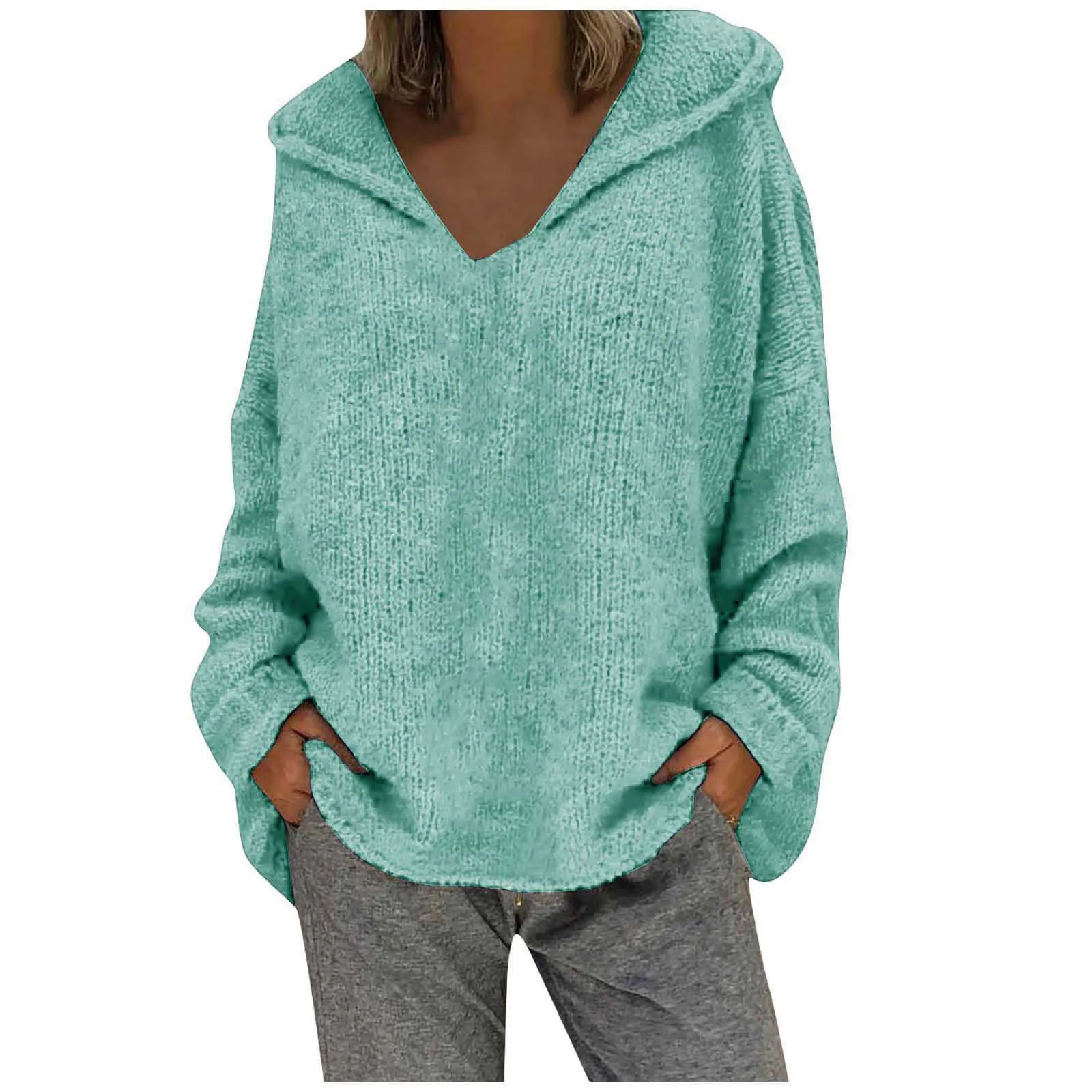 Женская модная свободная однотонная кофта большого размера с капюшоном и длинными рукавами