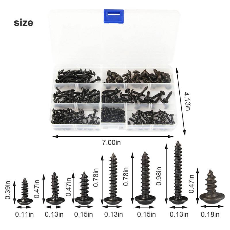 Как вы можете видеть на изображениях, этот фантастический комплект состоит из высококачественной новой и блестящей черной фланцевой головки с цинковым покрытием. Мы считаем, что этот комплект отлично подходит для любого энтузиаста DIY и для тех, кто работает на автомобилях, так как эти винты обычно используются в качестве триммеров в большинстве автомобилей и других автомобилей
