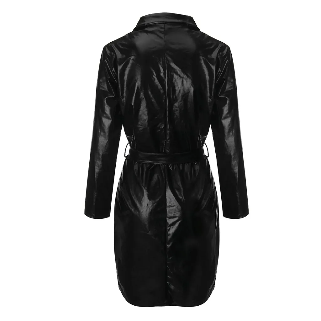 Sexy Women Deep V-Neck Long Sleeve Dress Leather Lingerie Party Wear Belt S-XL