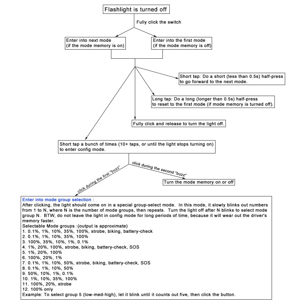Если температура фонарика ниже 55 градусов Цельсия, он будет выводить полный ток. Если он выше 55 градусов Цельсия, он будет постоянно регулировать ток, чтобы фонарик не перегревался.