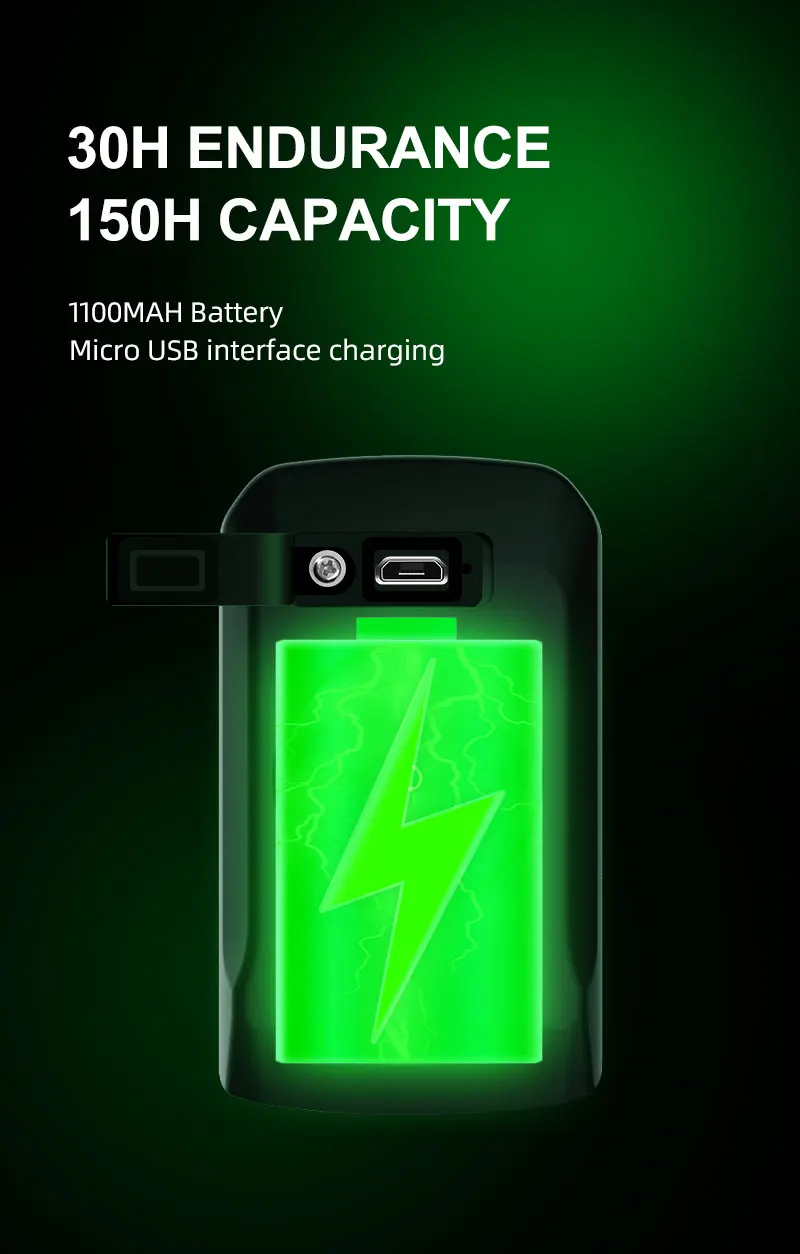 -Перезаряжаемая батарея 1100 мА · ч, сверхвысокая выносливость 30 + часов