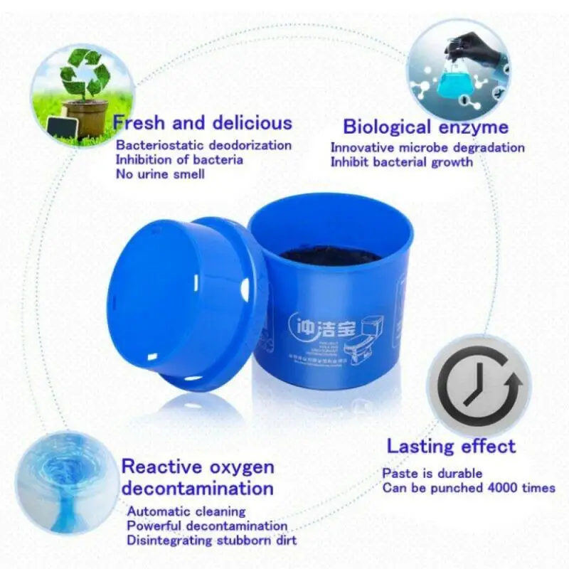Способ применения: Поместите кусочек в резервуар для воды унитаза, дайте ему стоять вертикально, подождите, пока вода станет синей, затем он сможет содержать унитаз чистым и удалять запах.