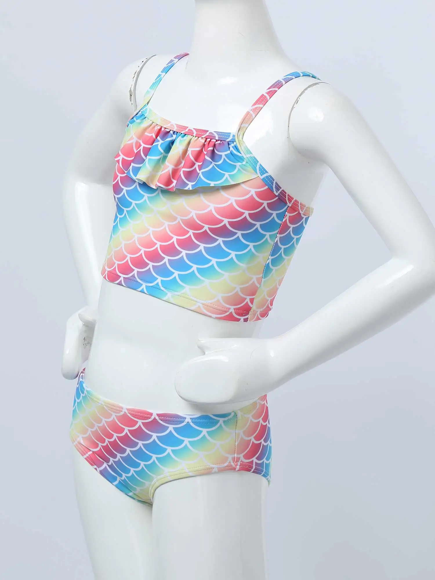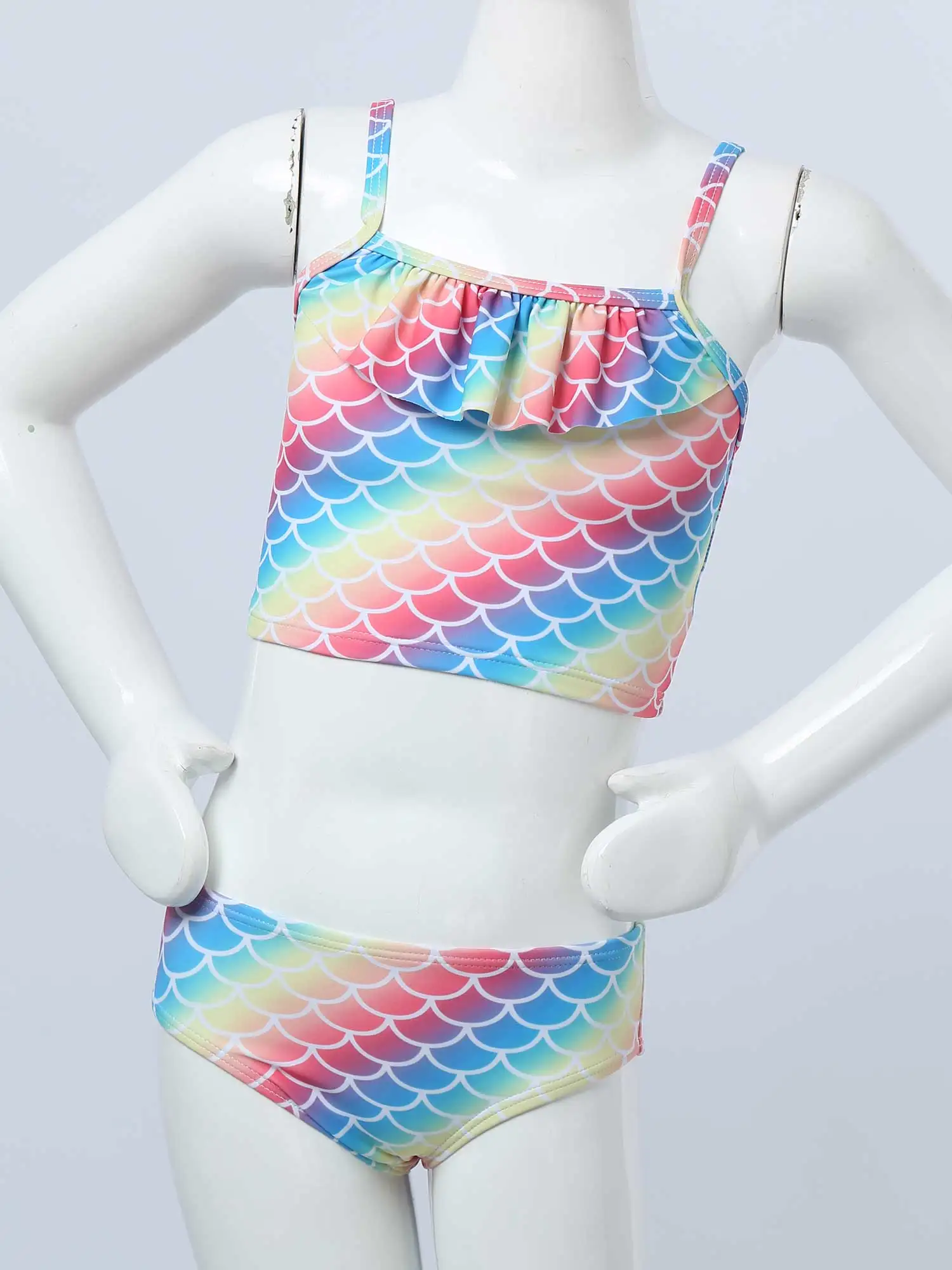 Купальник-Двойка для маленьких девочек; Купальный костюм; Раздельный купальник бикини русалки с рисунком рыбьей чешуи; Комплект танкини.