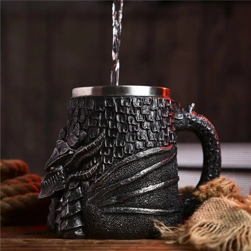 600 мл средневековый Дракон из нержавеющей стали Смола 3D пивная кружка Кубок игра Танкард кофейная чашка бокал для вина кружки лучший подарок