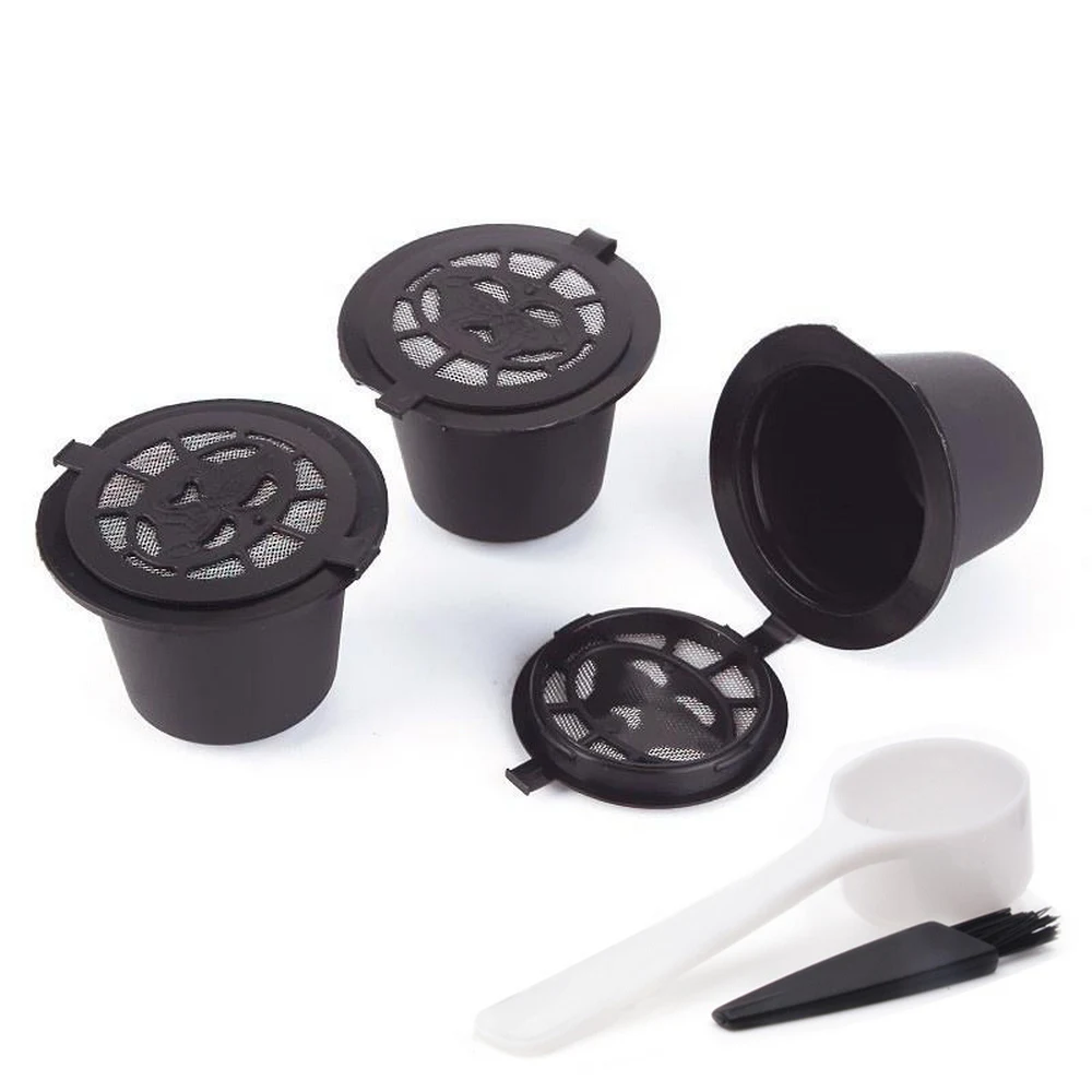 Многоразовые капсулы кофе Nespresso чашки с ложка-кисточка черный многоразового кофе капсулы подарок фильтр для кофе аксессуары 1/3/6 шт.