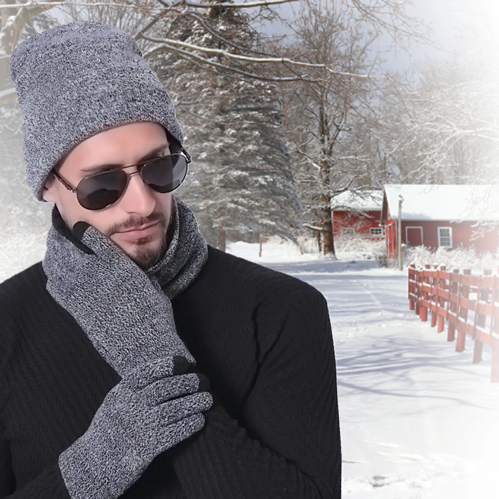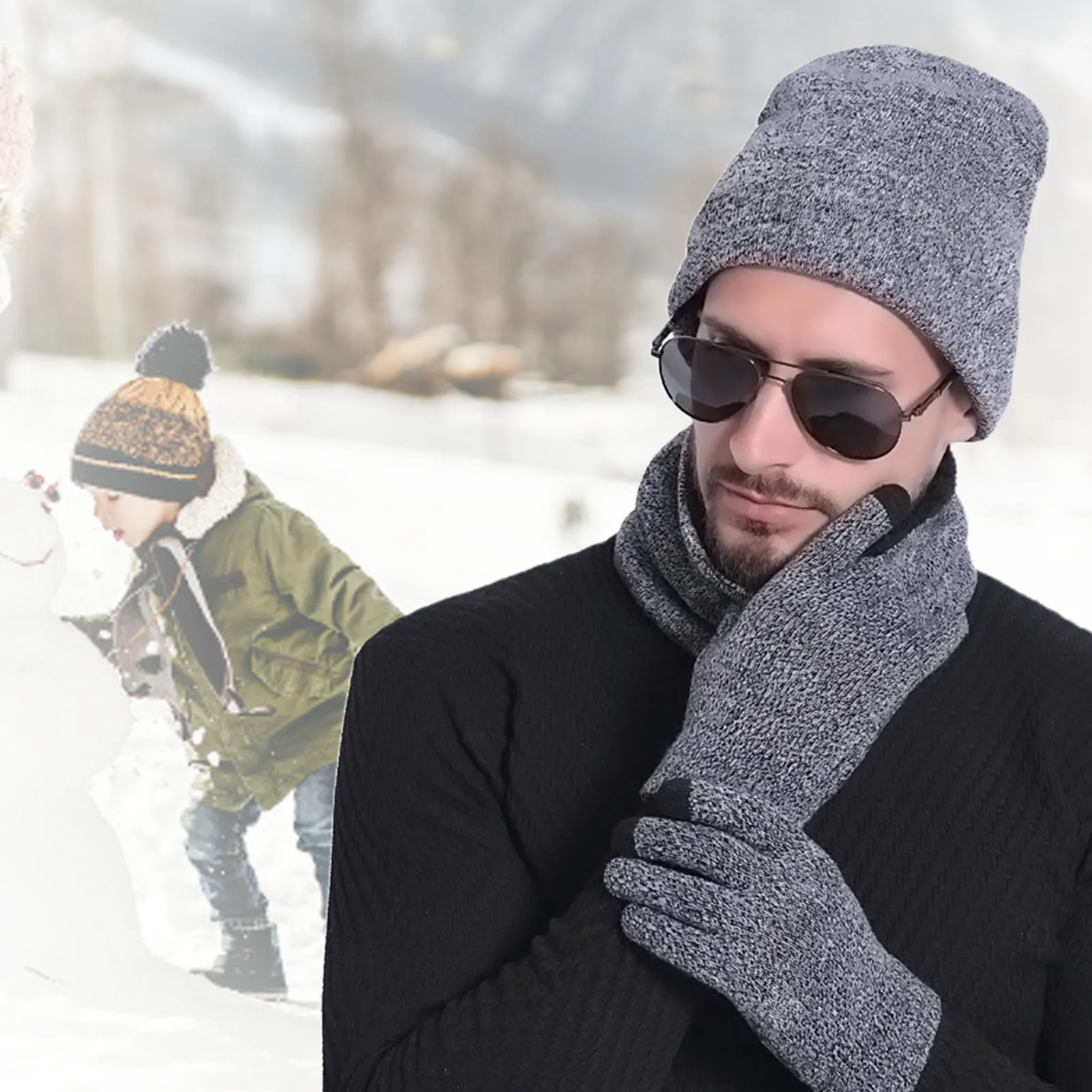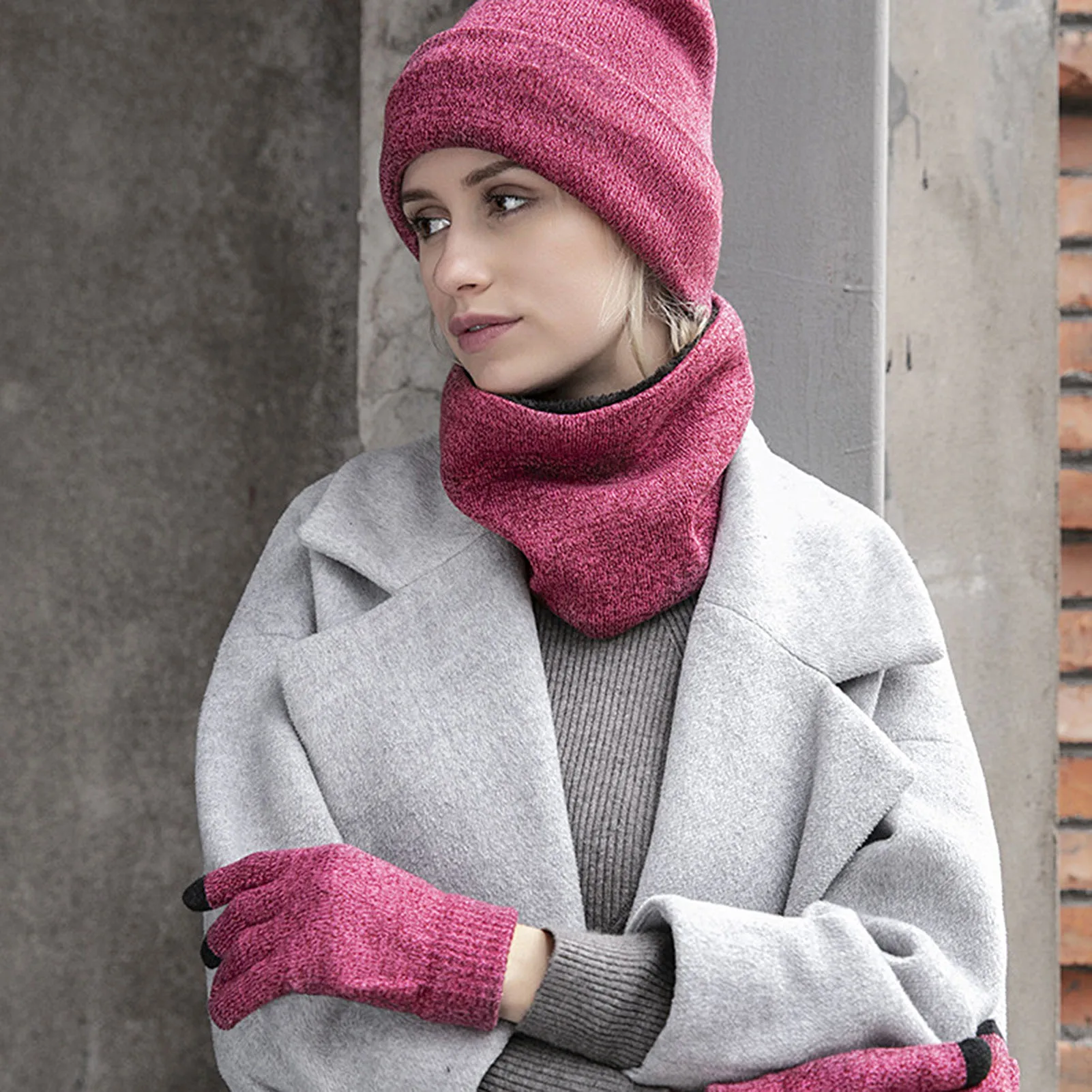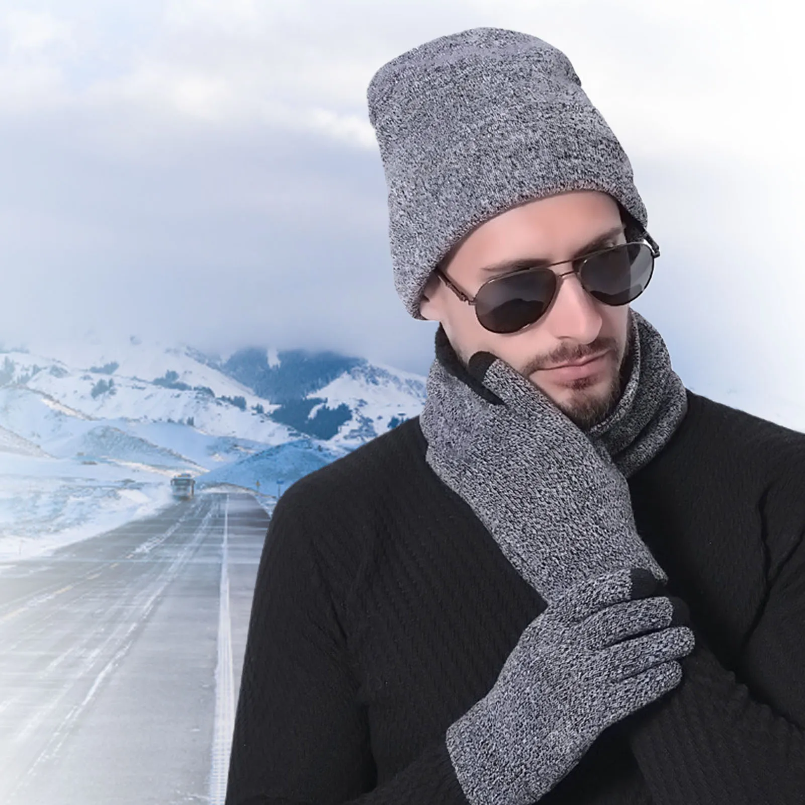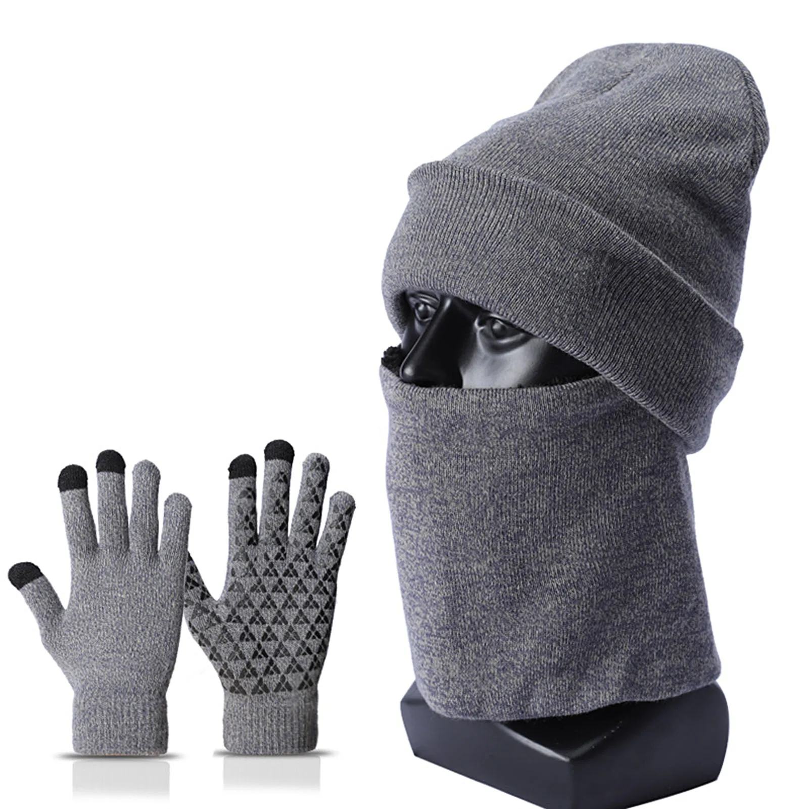Мужские и женские модные зимние парные утепленные ветрозащитные плюшевые шарфы перчатки шапка набор
