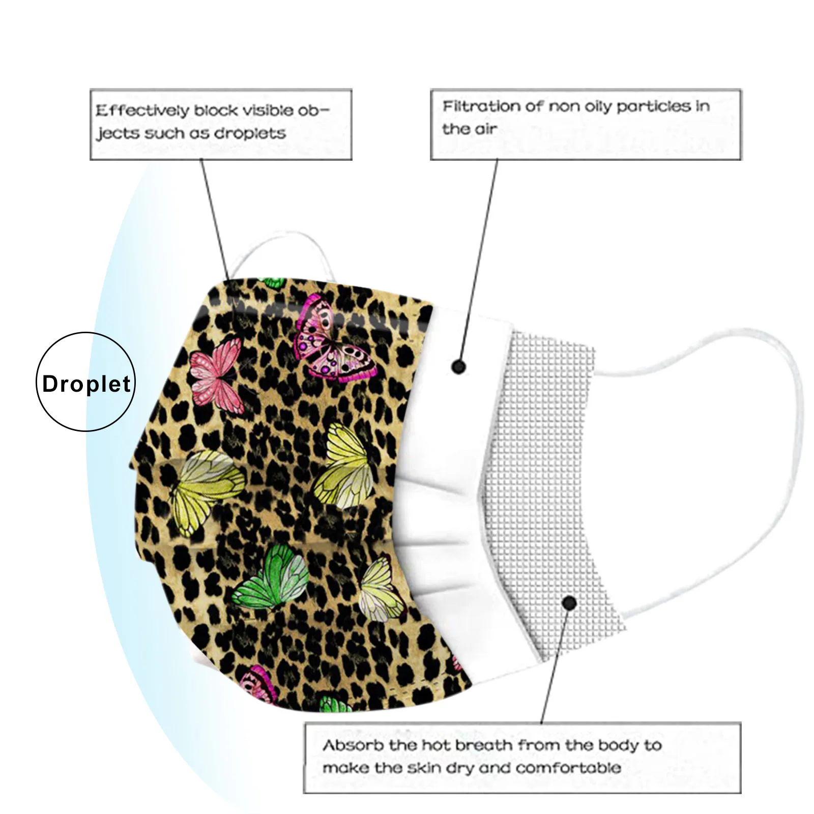 В 3 слоя Нетканая одноразовая маска изготовлена из 3 слоев нетканого материала, Безопасен и безопасен для использования. Дышащий материал и милый Узоры, которые делают его полезным и модным. Специальный 3 слоя из нетканого материала Дизайн, обеспечивает некоторую защиту от пыли, автомобильных выхлопных газов, Пыльца и т. д. эластичная Ушная петля, легко носить и не давит на уши. Маникюрный салон или любые другие области, где может потребоваться защита