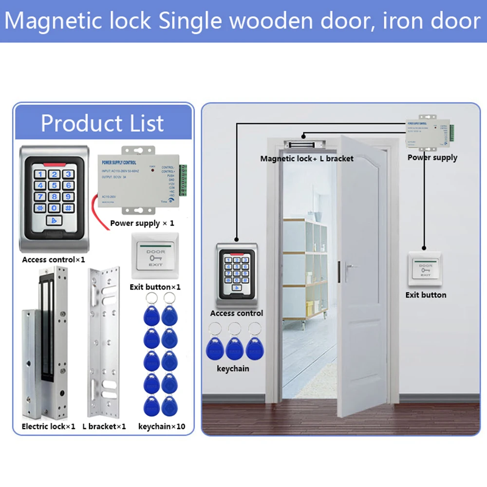Посылка включает в себя: контроль доступа + блок питания + Электрический замок * 2 + кронштейн U * 2 + кнопка выхода + 10 шт брелок