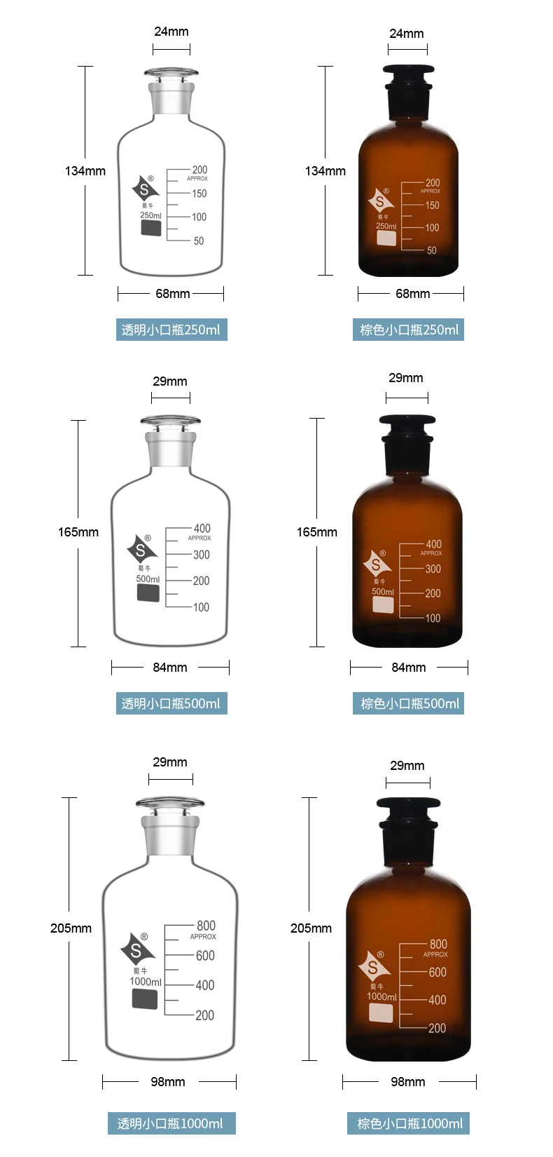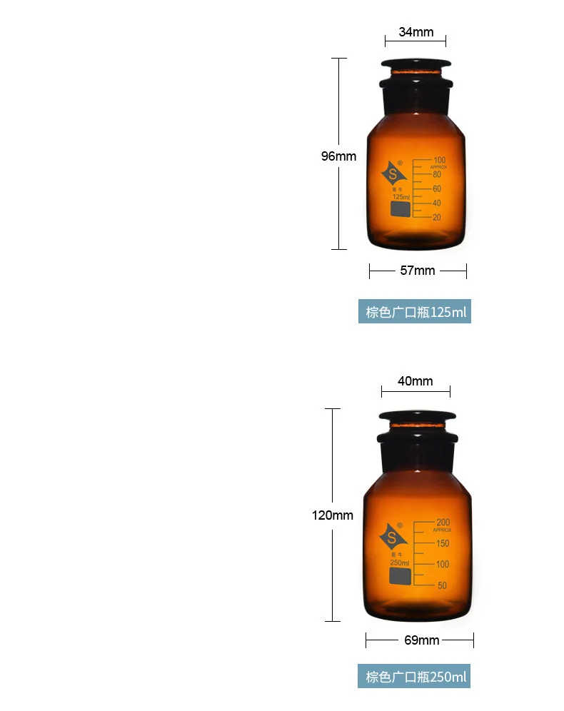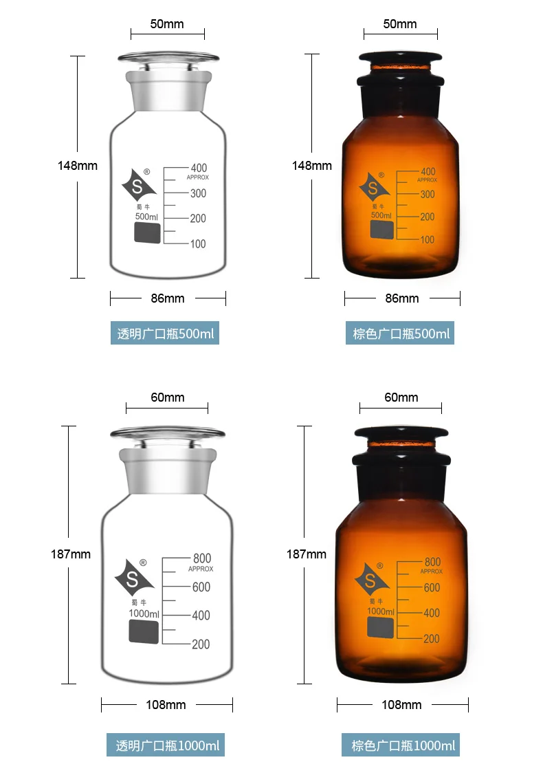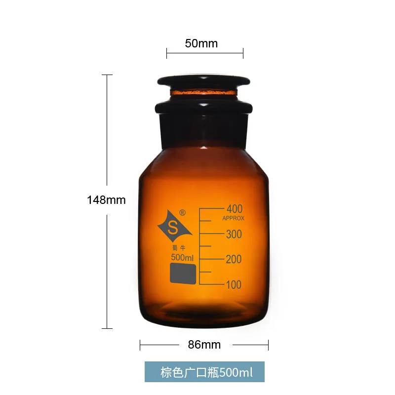 Стеклянная коричневая бутылка для реагентов с широким горлышком, 60 -1000 мл